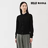 【MUJI 無印良品】女水洗羊毛高密織POLO開襟衫 L 黑色