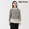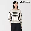 【MUJI 無印良品】女可水洗米蘭諾螺紋半拉鍊針織衫 L 柔白橫紋