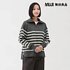 【MUJI 無印良品】女可水洗米蘭諾螺紋半拉鍊針織衫 S 深灰橫紋