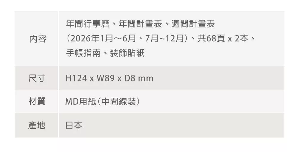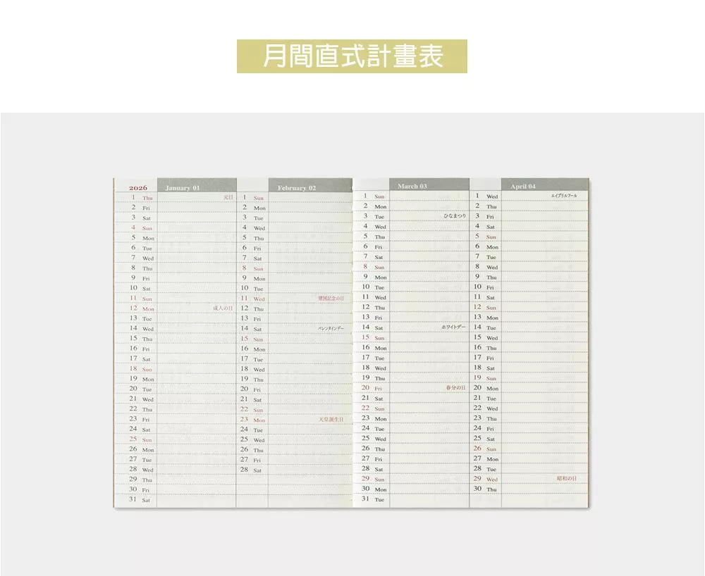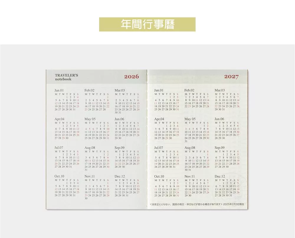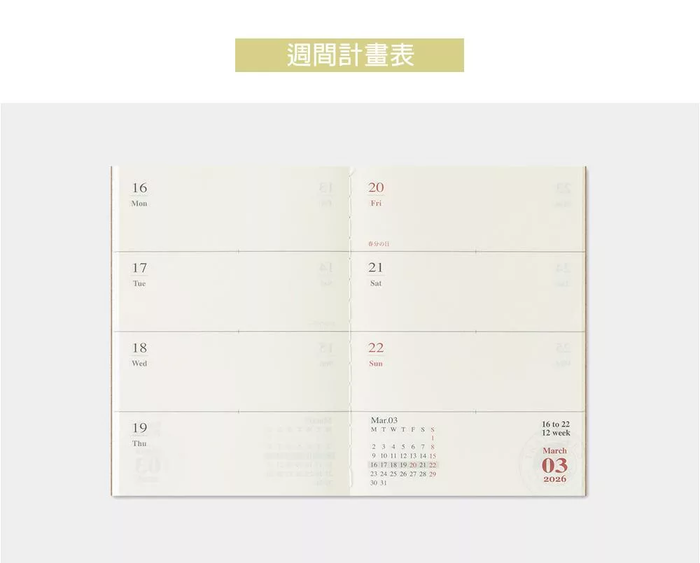 (2) TRC Traveler’s Notebook 2026手帳補充包PA尺寸-週間