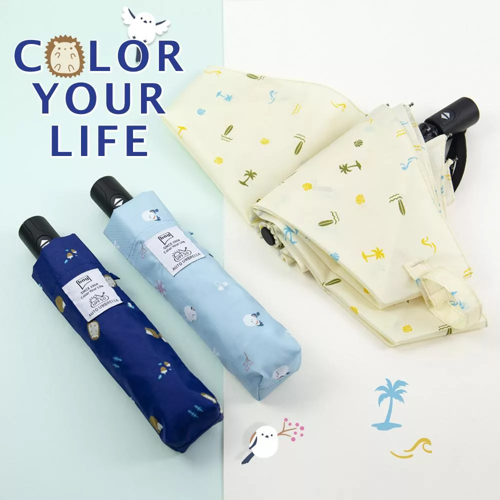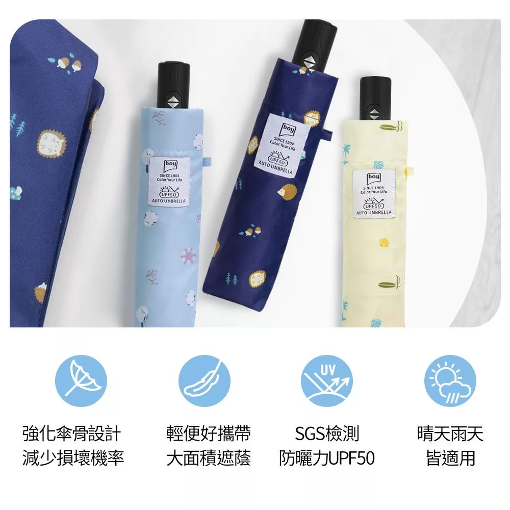 【德國boy】抗UV三折輕收防曬自動傘_ 森林刺蝟