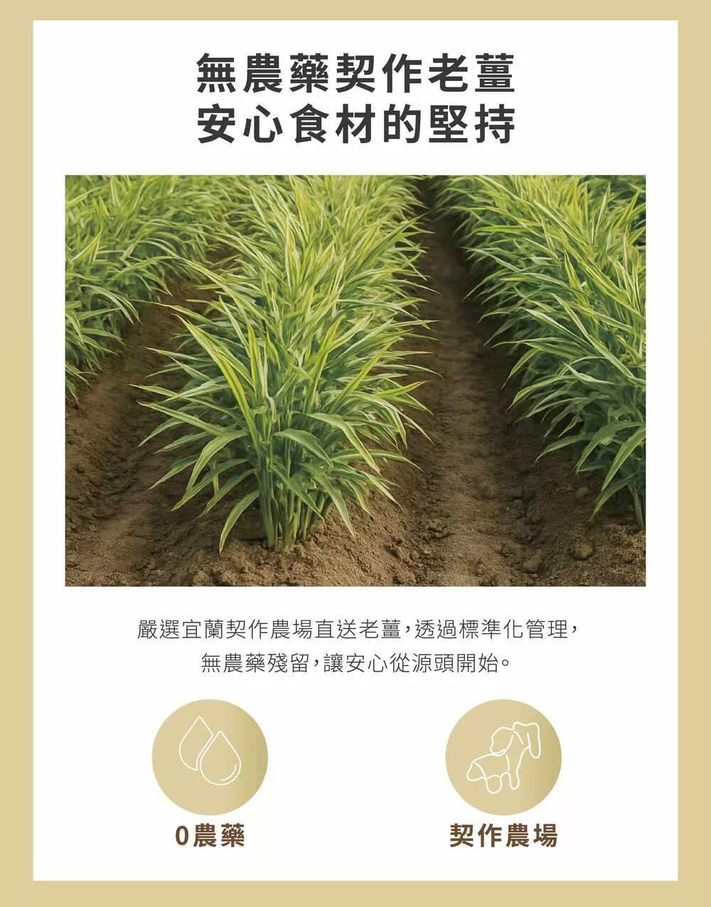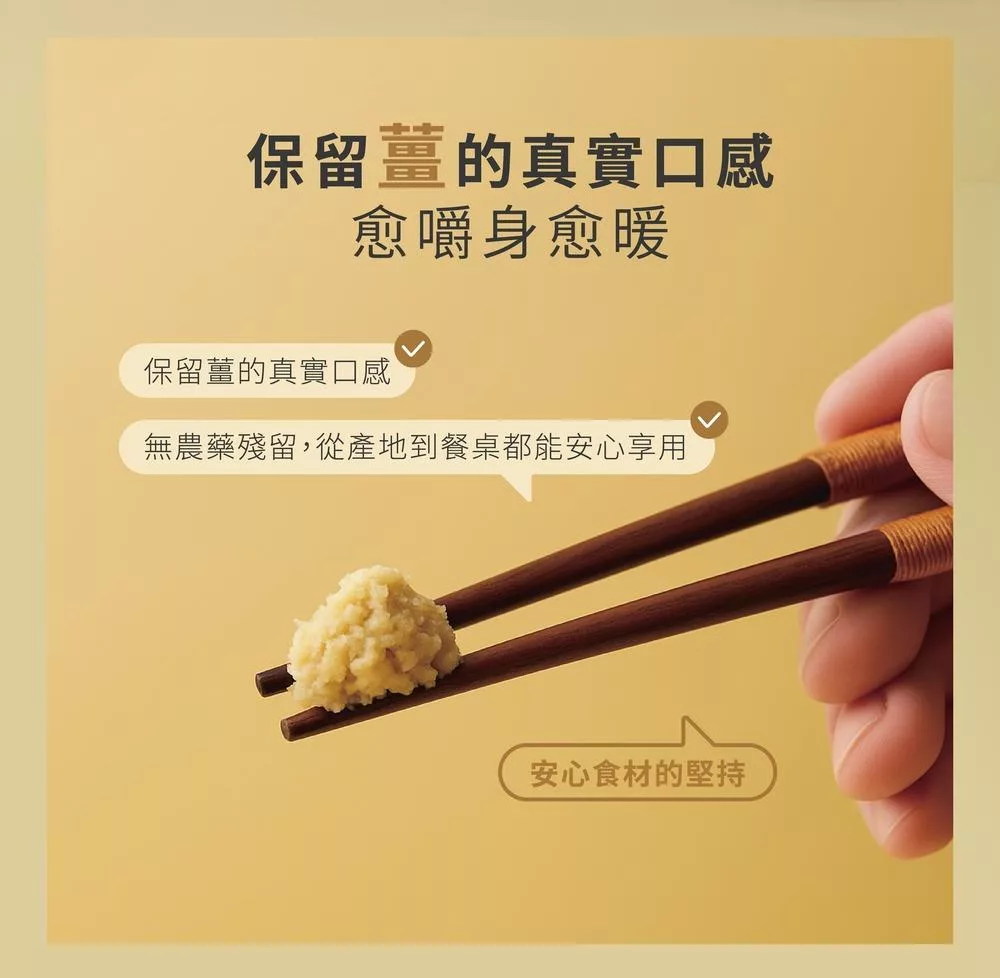宜蘭契作老薑製成 70 % 高比例製程
