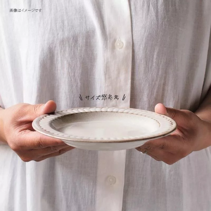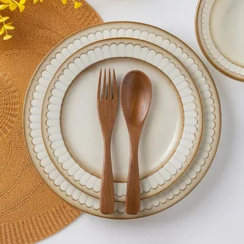【日本Minoru】職人窯燒 花形 陶瓷深盤21.8cm ‧ 杏白