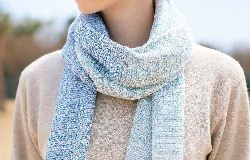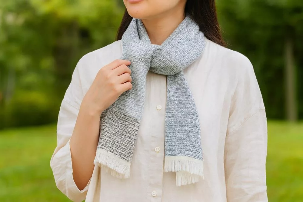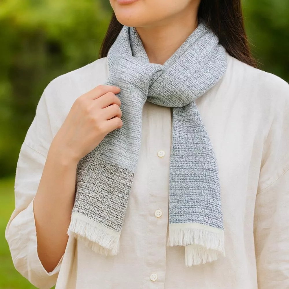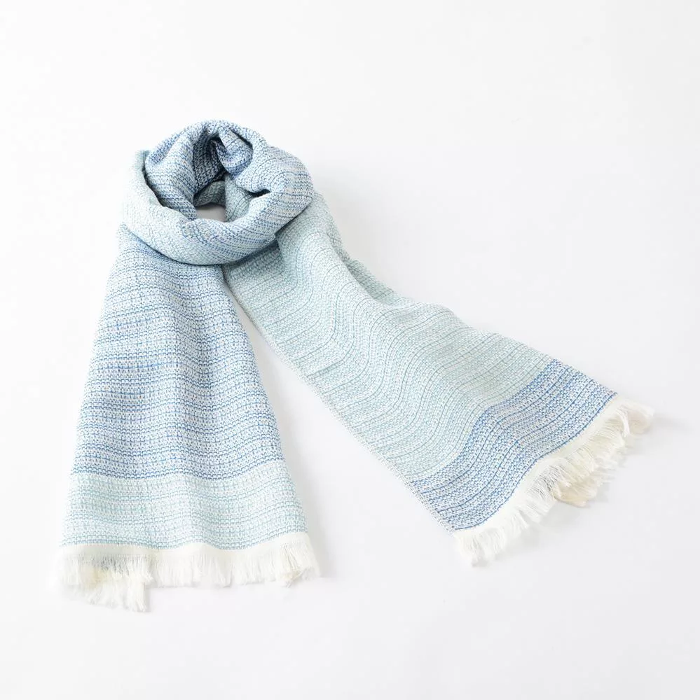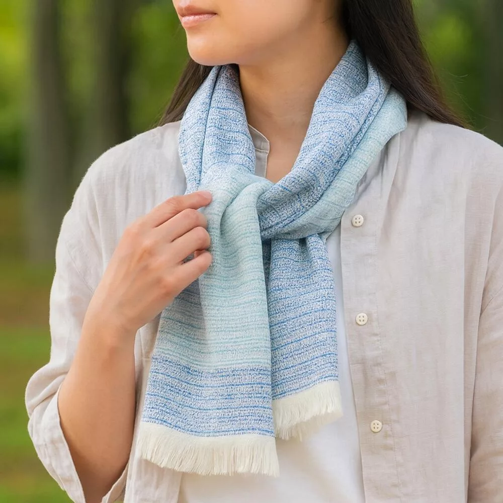 【日本ORIM今治毛巾】美濃和紙 透氣流蘇圍巾 ‧ 露藍