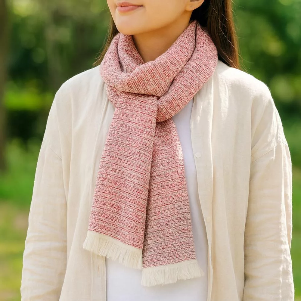 【日本ORIM今治毛巾】美濃和紙 透氣流蘇圍巾 ‧ 茜紅
