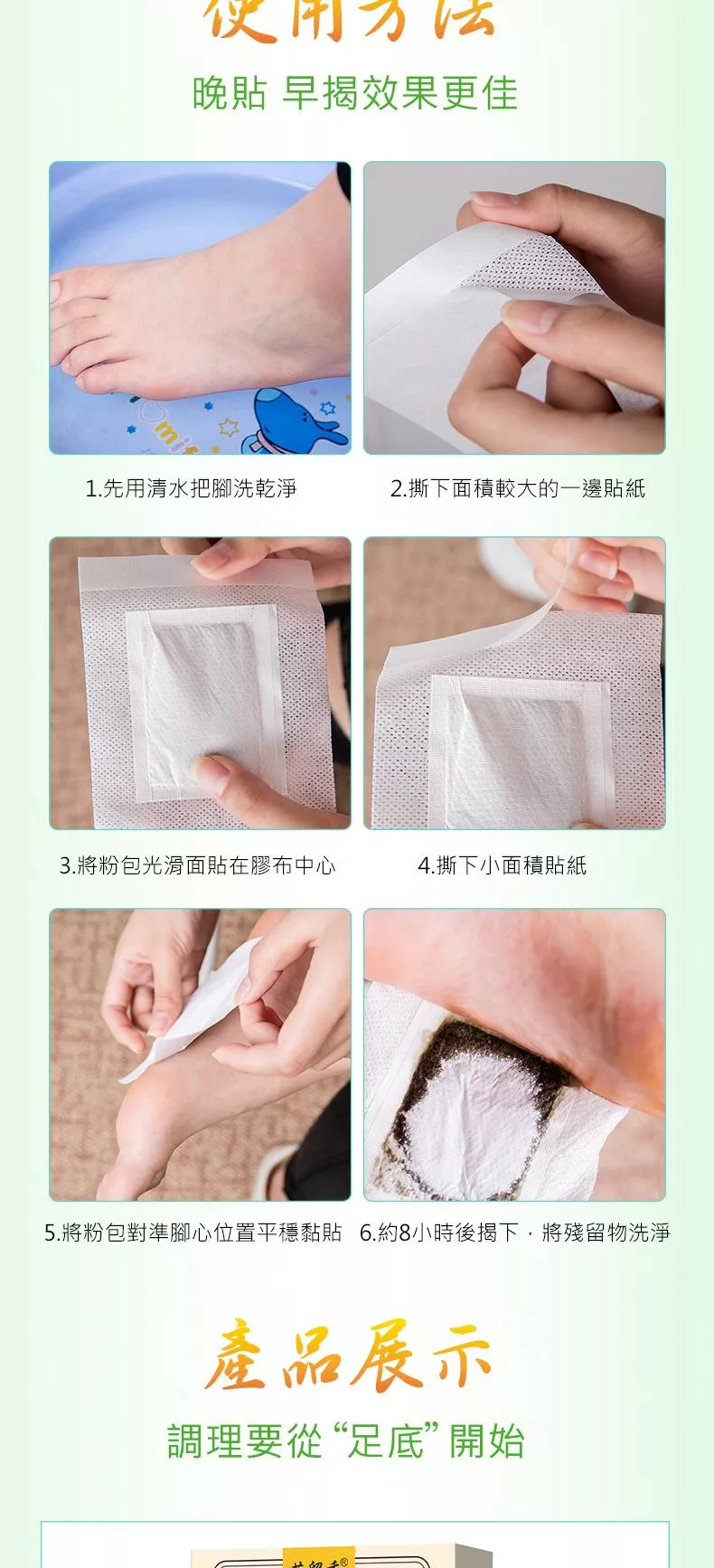 清潔腳底:使用前先洗腳,保持皮膚乾燥。