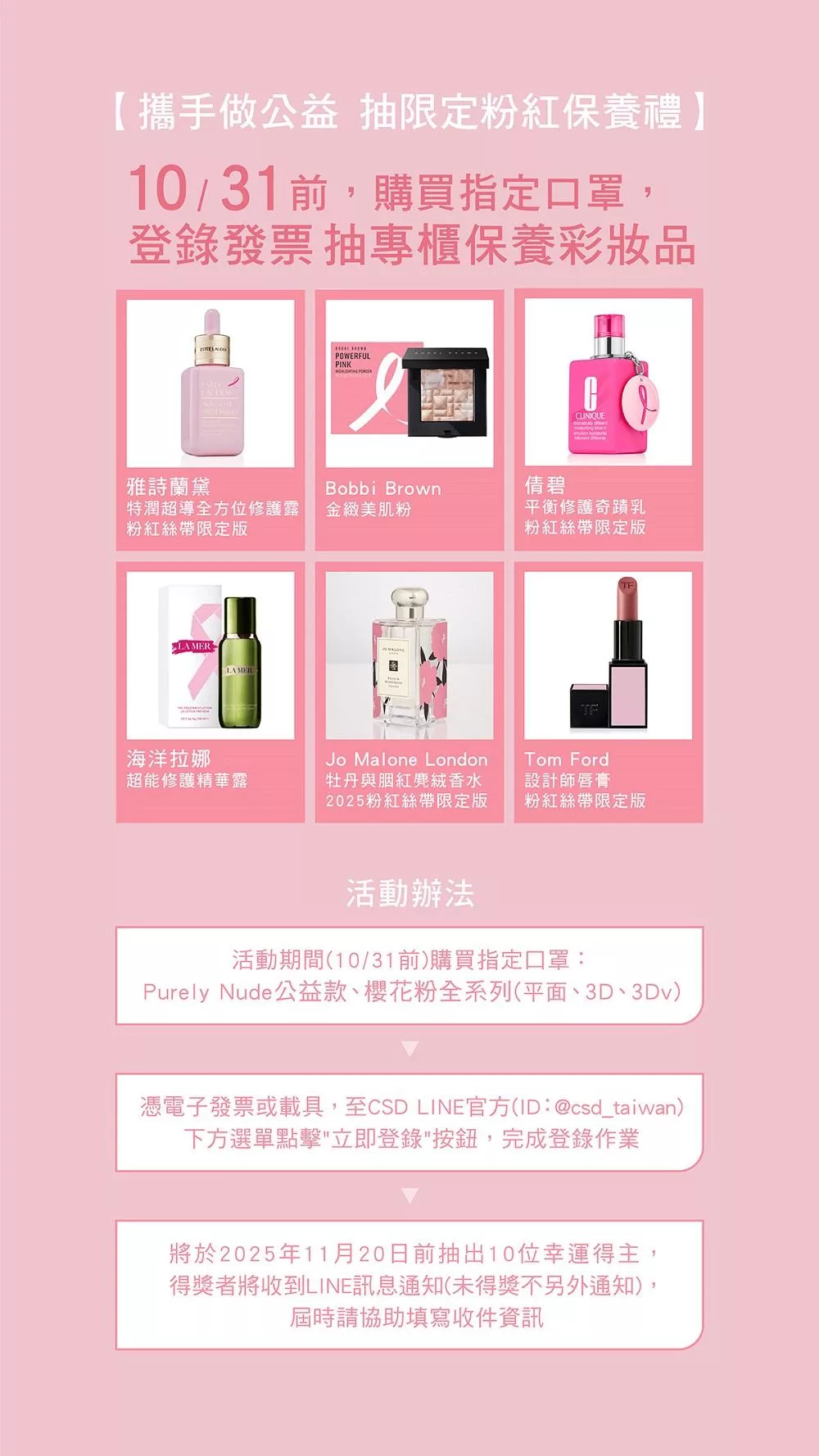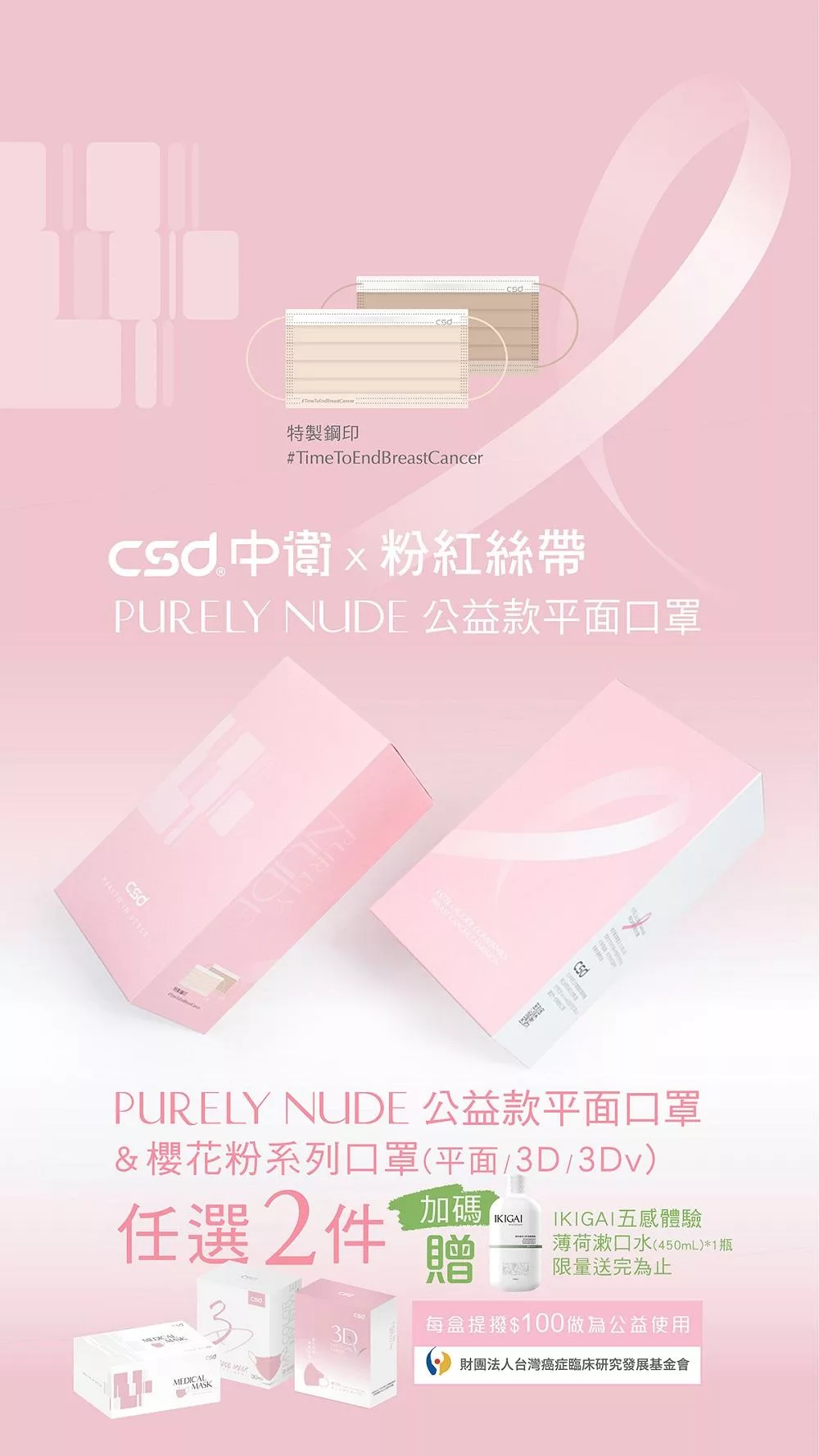 CSDx 粉紅絲帶Purely Nude公益款平面口罩2025