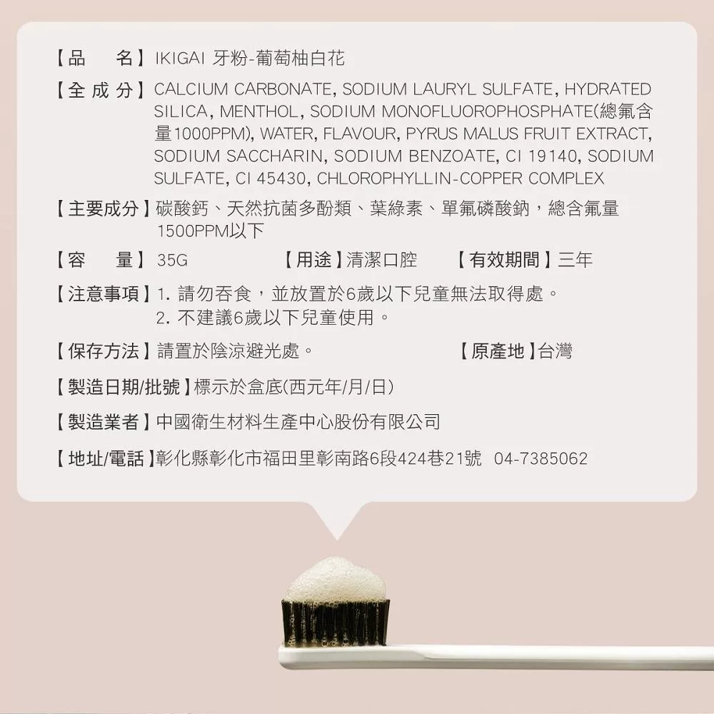 【CSD 中衛】IKIGAI牙粉(35g/瓶) - 龍井苑