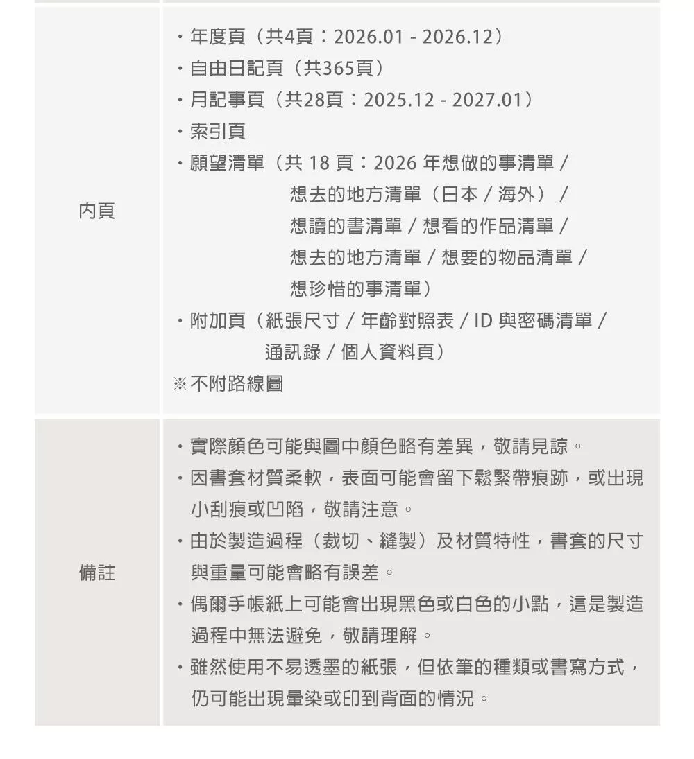 自 2025 年度版起,手帳本體的紙張已更換為「Tomoe River S」。