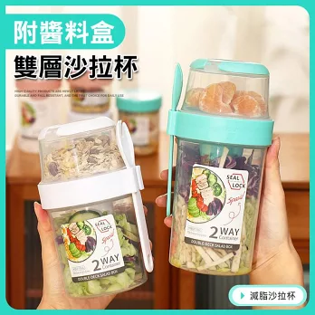 附醬料盒★雙層沙拉杯 輕食早餐沙拉杯 分層早餐杯 燕麥杯 減脂沙拉杯 減肥午餐杯 雙層保鮮杯 水果杯