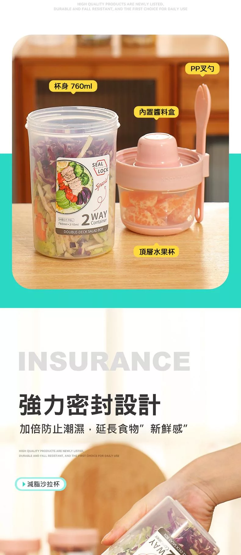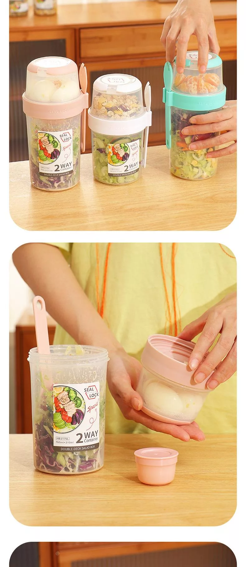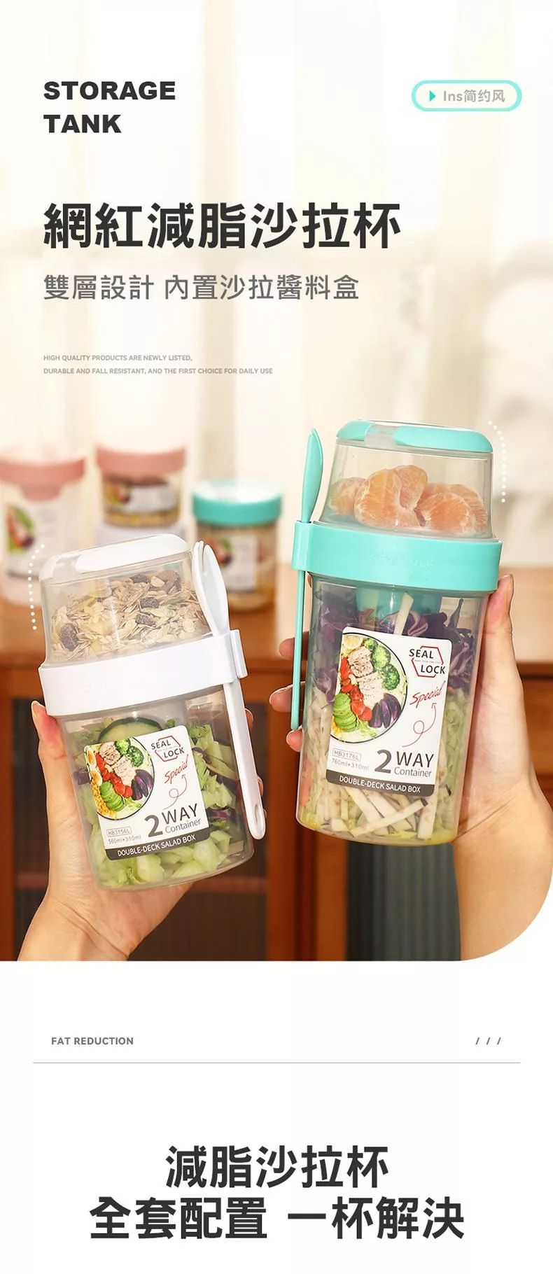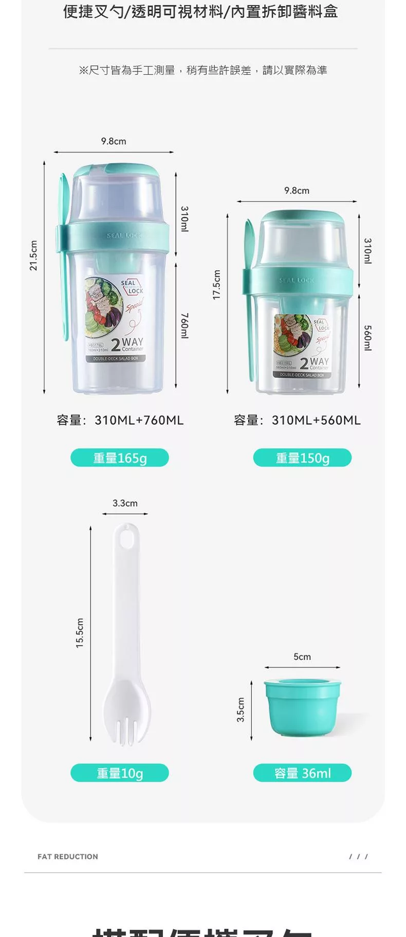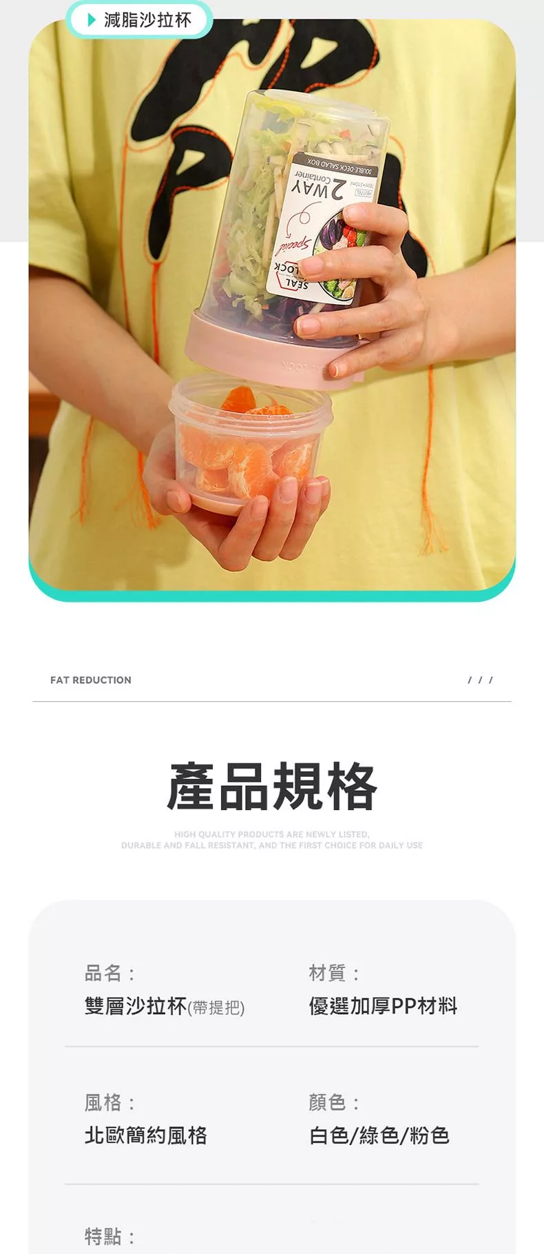 附醬料盒★雙層沙拉杯 輕食早餐沙拉杯 分層早餐杯 燕麥杯 減脂沙拉杯 減肥午餐杯 雙層保鮮杯 水果杯