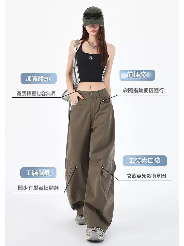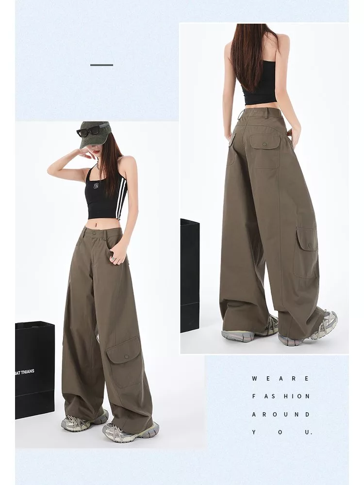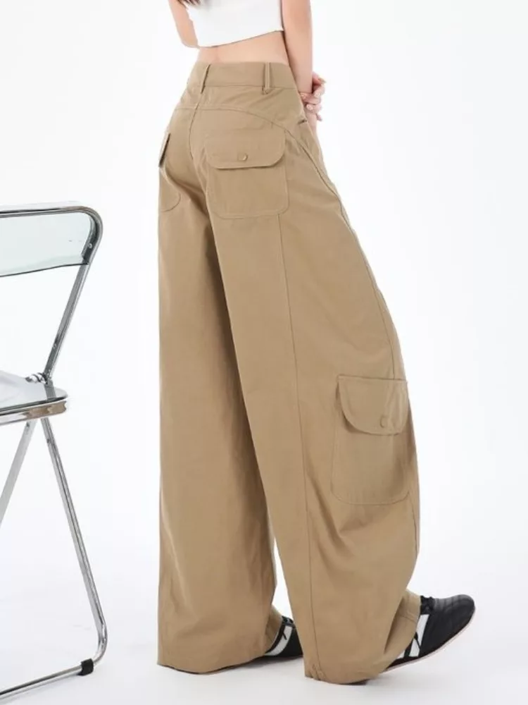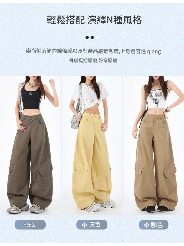 美式復古辣妹彎刀褲百搭顯瘦多口袋休閒褲#