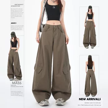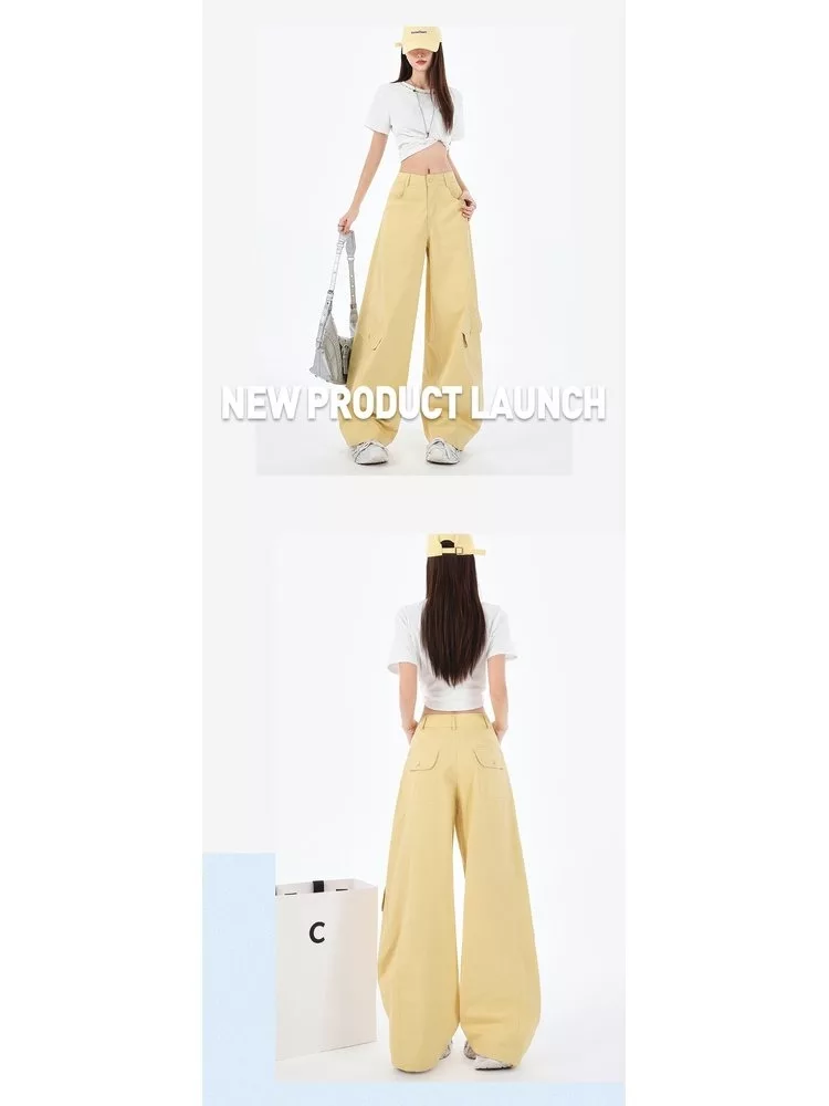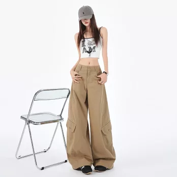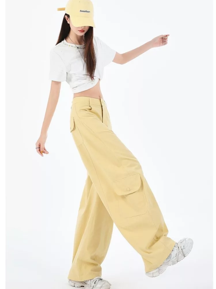 【MsMore】 美式復古辣妹彎刀褲百搭顯瘦多口袋休閒褲# 126237 S 黃色
