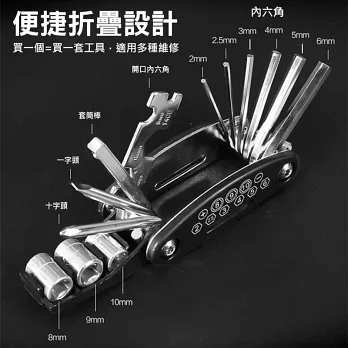 修車補胎扳手 多功能工具 16功能 折疊 摺疊 工具組 內六角 外六角 螺絲起子 套筒扳手 修車工具 自行車工具 露營工具