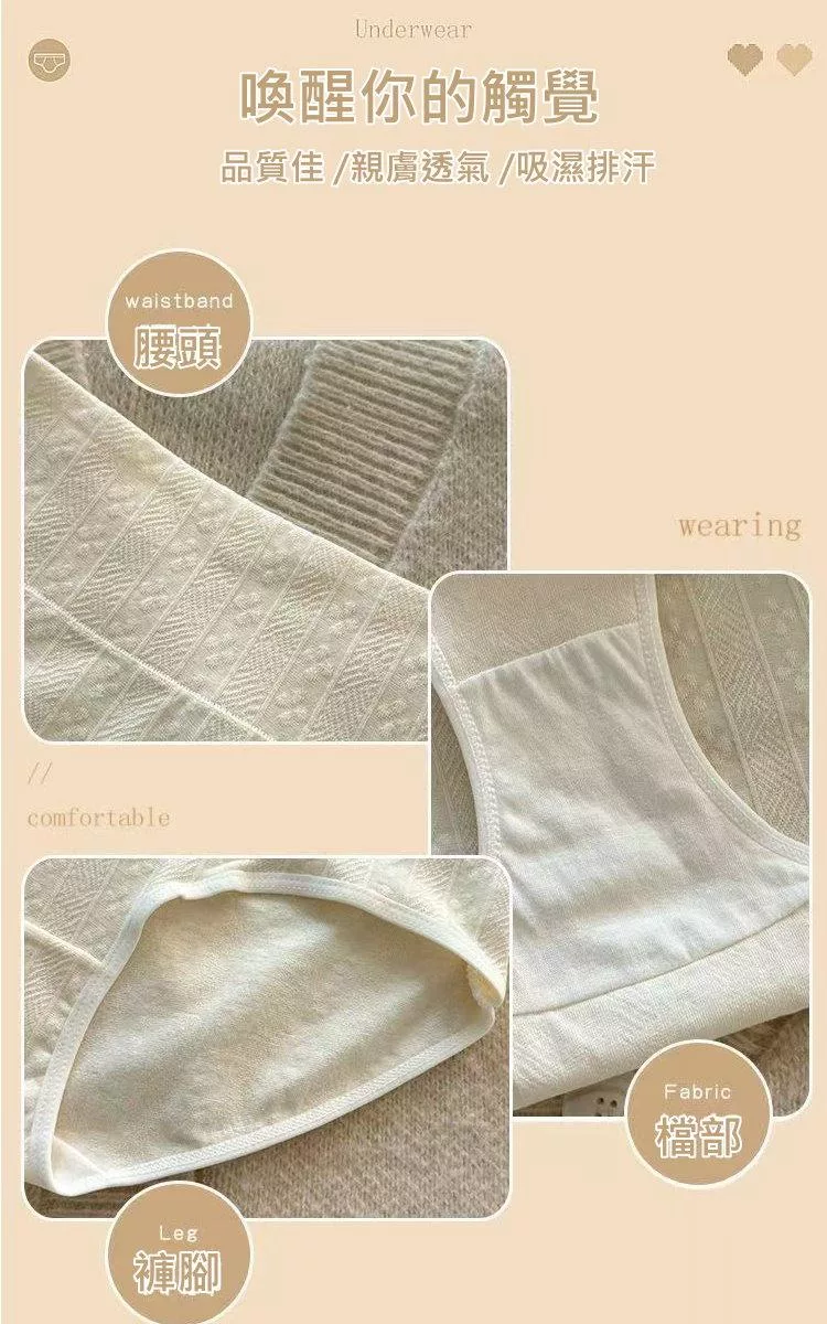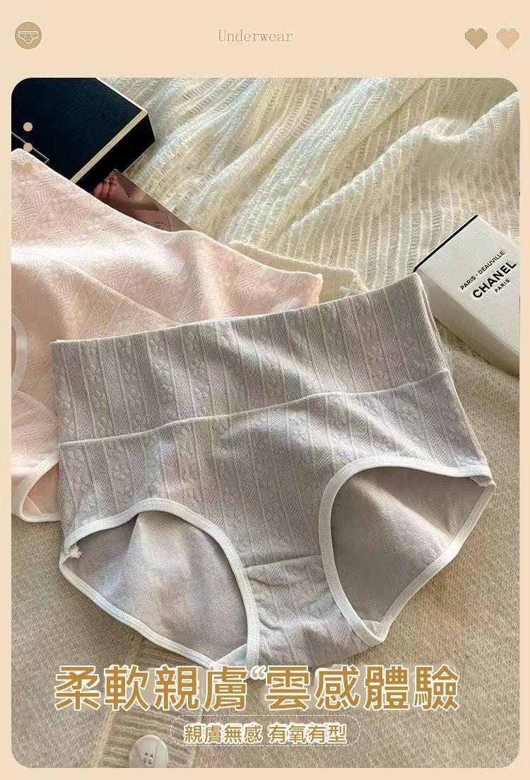 【唯蜜色】印花無縫無痕舒適透氣包邊彈力高腰女用內褲 白色