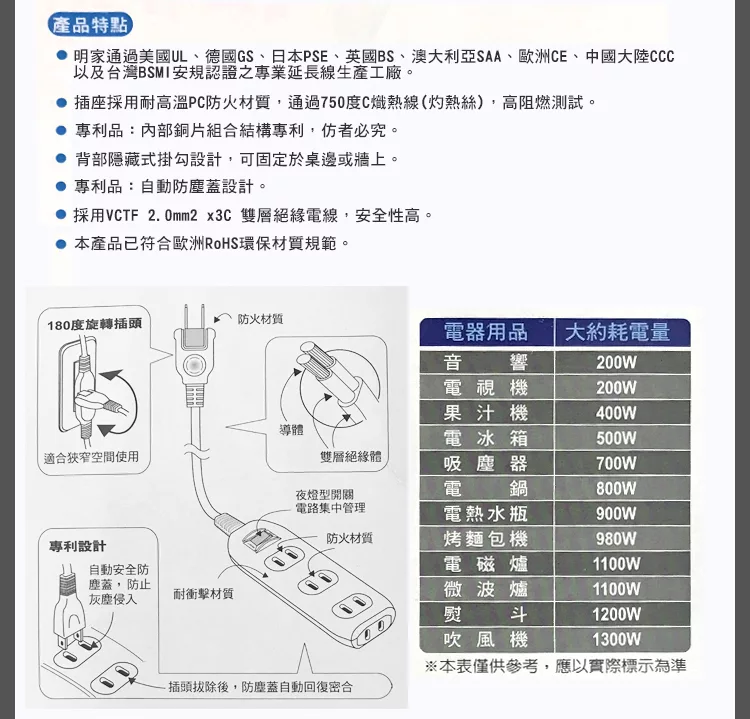 Tyson太順電業 TS-233AS 2孔3切3座延長線(轉向插頭)-1.8米