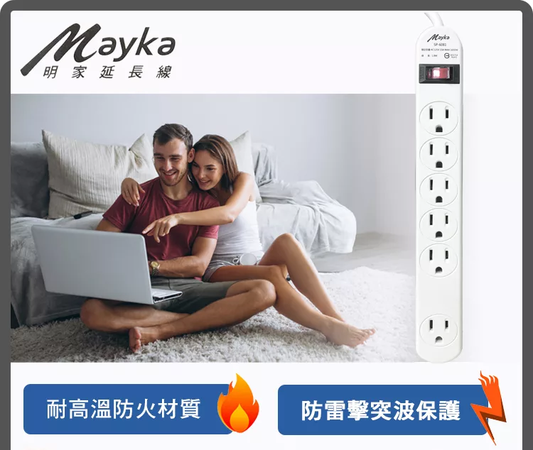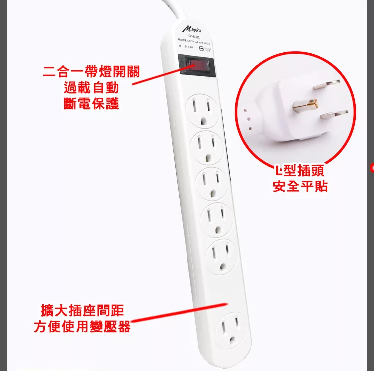 【Mayka明家】1開6插 家用延長線 1.8M 6呎 (SP-6081-6 省電 節能 環保安全 電源管理)
