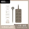 +886 [極野家] 6開6插過載保護延長線1.8米 V2 HPS2660 (3色可選) 奶茶棕