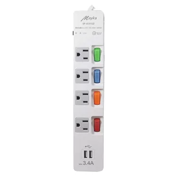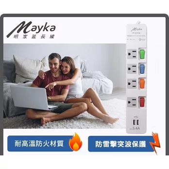 群加 PowerSync 四開四插斜面開關防雷擊延長線/1.8m(TPS344BN9018) 白色