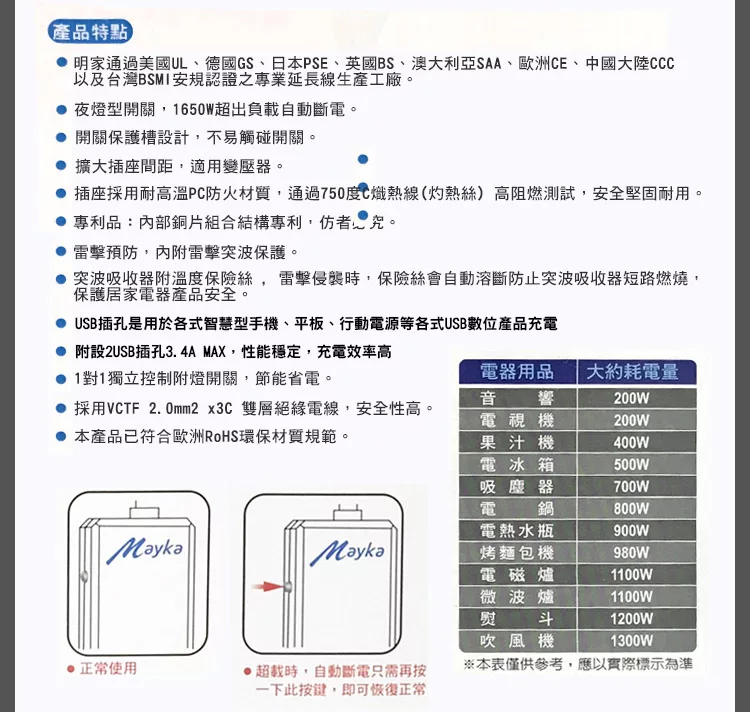 Tyson太順電業 354KS 3孔5切4座防塵蓋延長線(斜面開關/拉環扁插)-1.8M
