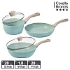 超值三鍋組【美國康寧】鈦輕量不沾鍋 牛奶鍋18cm+平煎28cm+深炒28cm