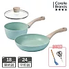 【JIA品家】家嚐不沾雙鍋組-平煎28cm(含鍋蓋)+單柄18cm 贈日本設計湯勺 莫蘭迪綠