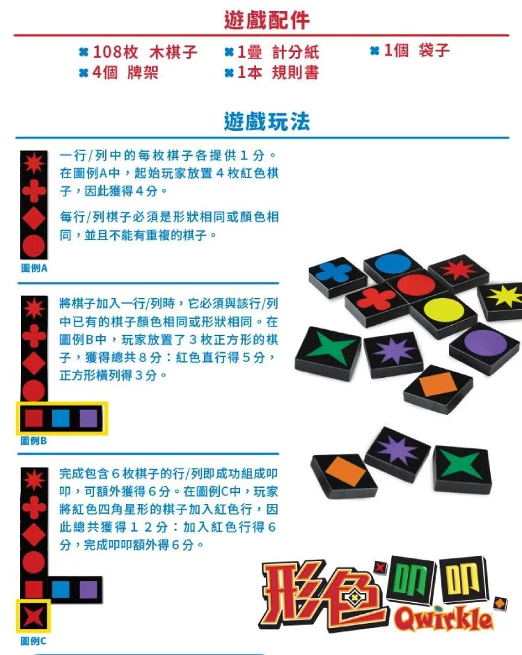 簡單又耐玩的得獎遊戲!每個行列的棋子都必須緊鄰,按照同色不同形或者同形不同色的規則放置,如果恰好放到了一個行列的最後一枚棋子,則可以獲得叩叩大加分!極簡的規則卻可蘊含各種彈性的戰術變化,一定要親身體驗這越玩越上癮的成就感!