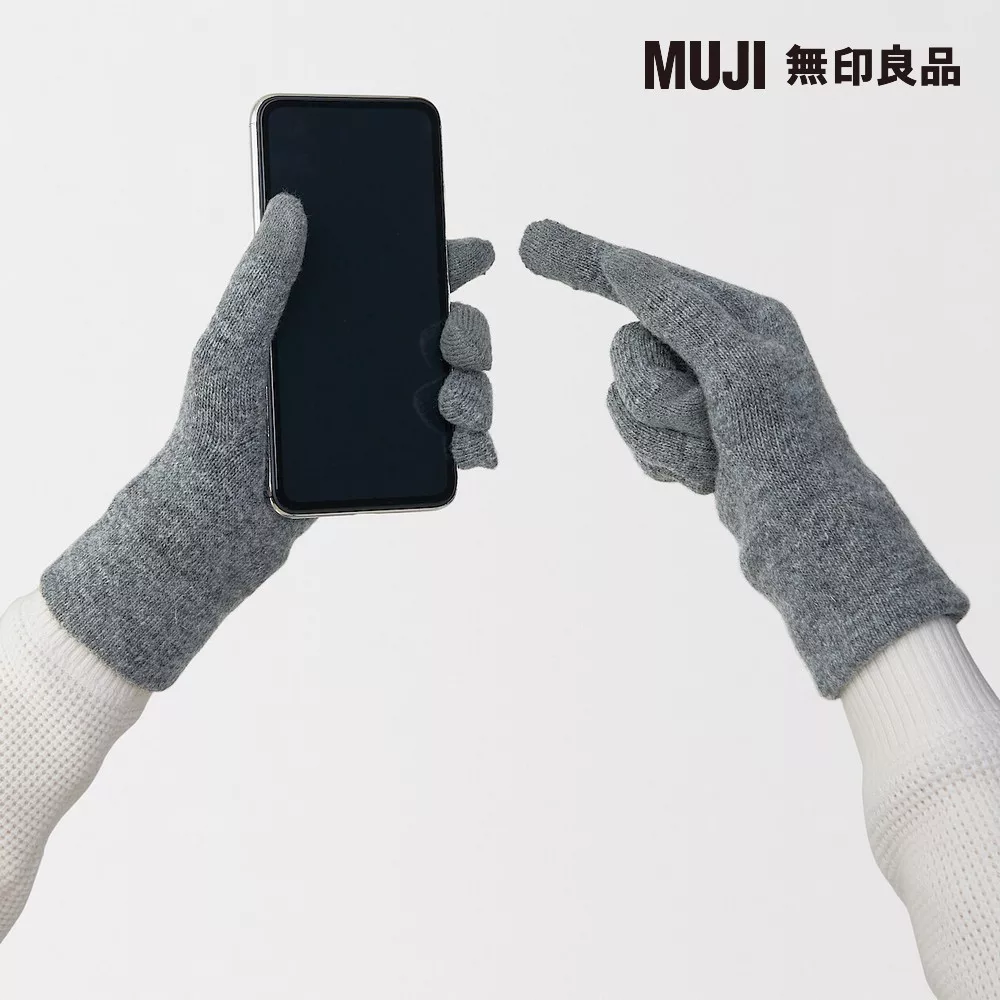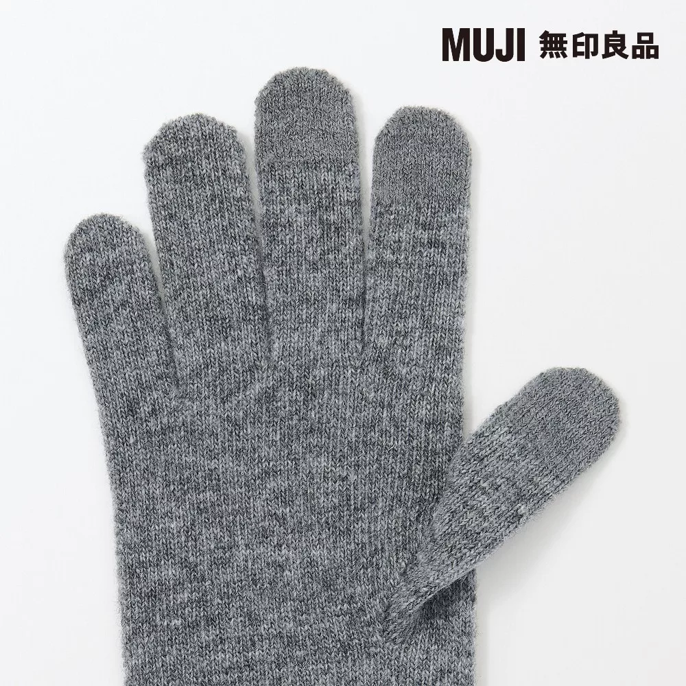 【MUJI 無印良品】美麗諾羊毛混內起毛觸控手套 FREE 灰色