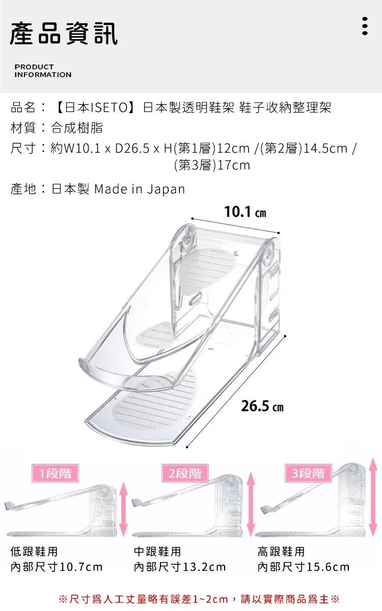 尺寸:約W10.1×D26.5xH(第1層)12cm/(第2層)14.5cm /(第3層)17cm
