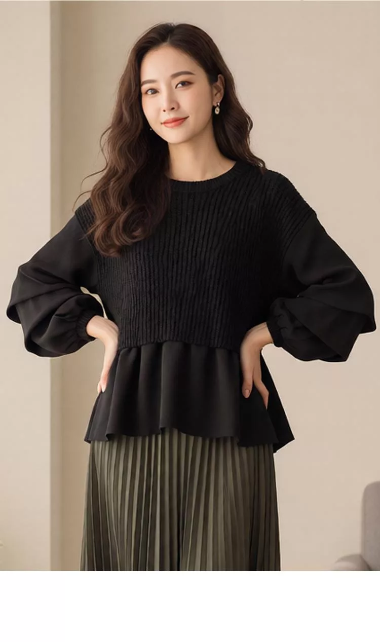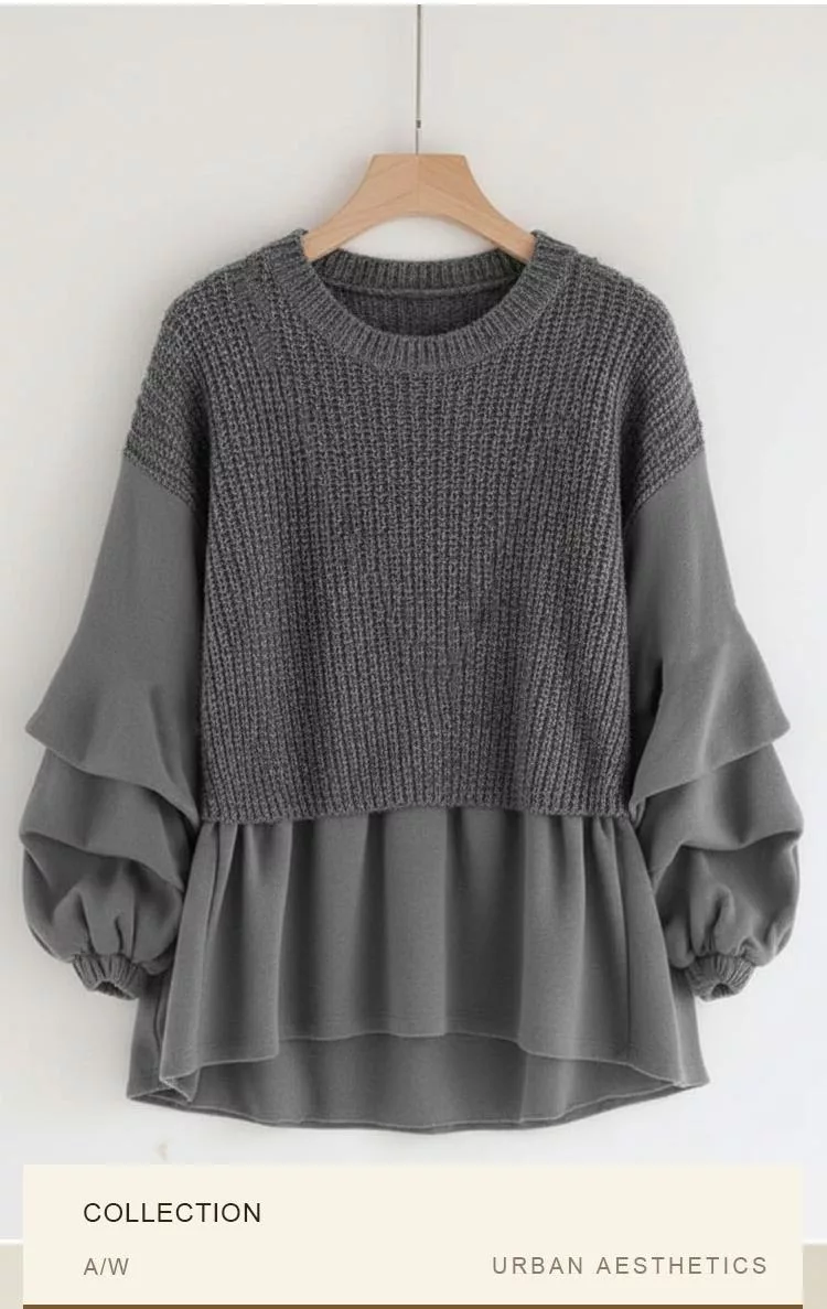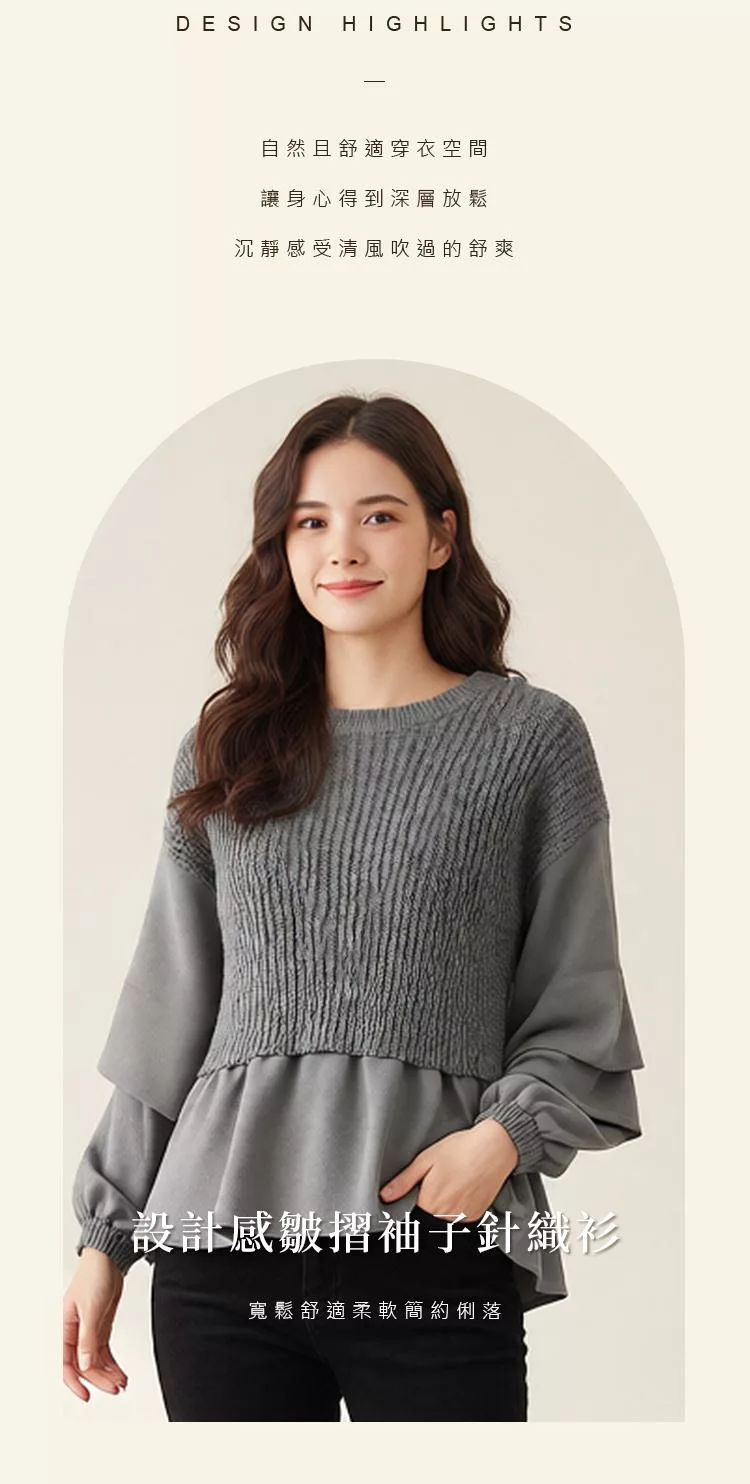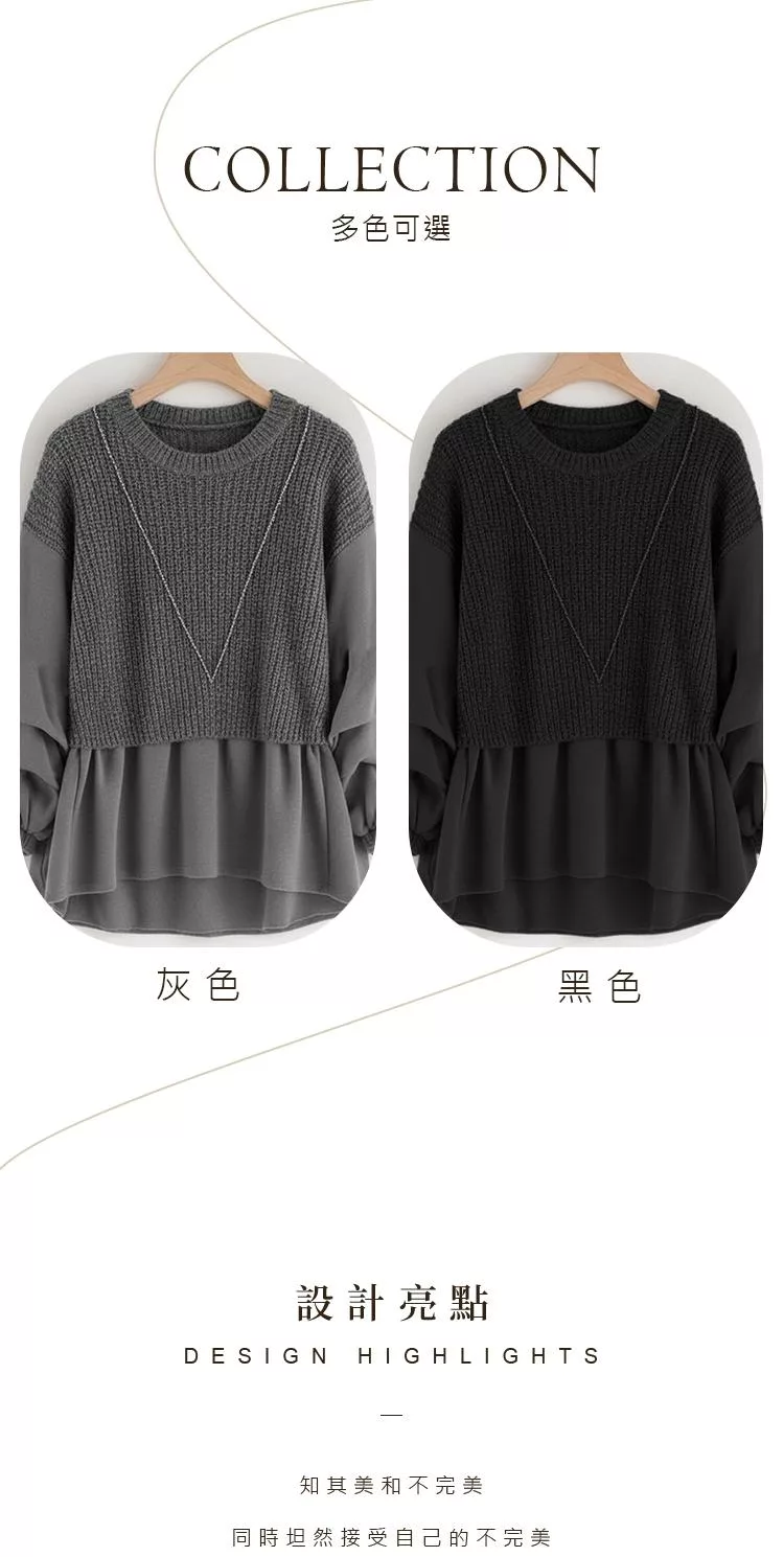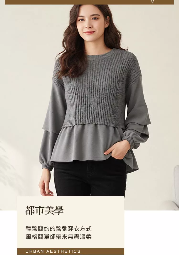 【初色】日系圓領長袖假兩件針織上衣女上衣-共2色-39974(M/L可選) M 灰色