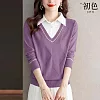 【初色】大菱格紋翻領假兩件長袖針織衫上衣女上衣-共4色-32010(F可選) F 紫色
