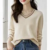 【MsMore】 羊毛感韓版’雞心領針織長袖上衣# 125954 FREE 米杏色