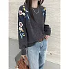 【MsMore】 刺繡花朵圓領毛衣針織衫上衣# 126697 FREE 灰色