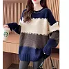 【MsMore】 條紋圓領針織毛衣寬鬆慵懶上衣# 126867 FREE 彩色