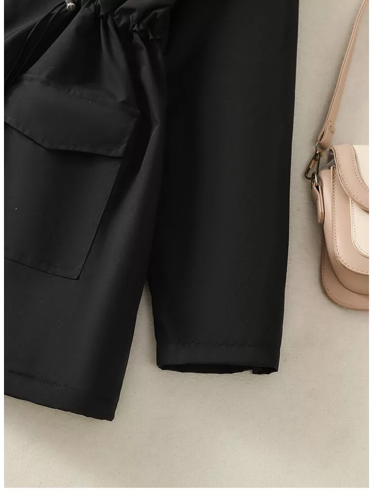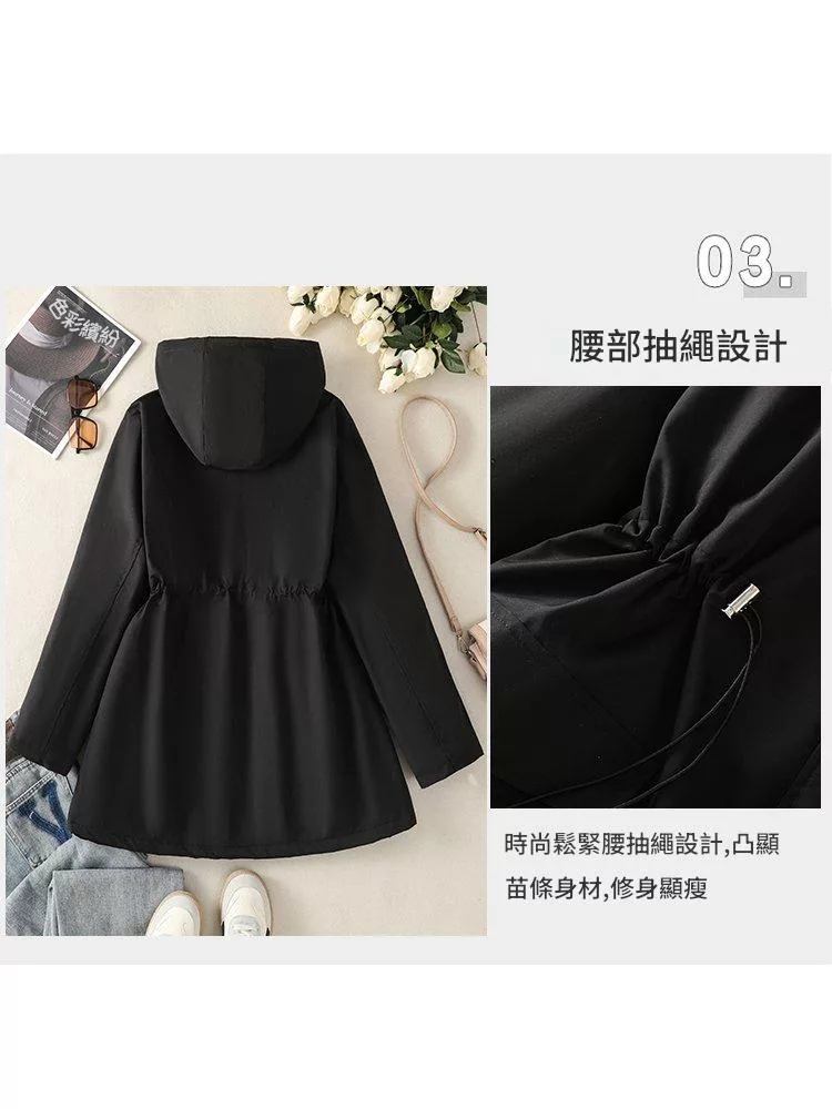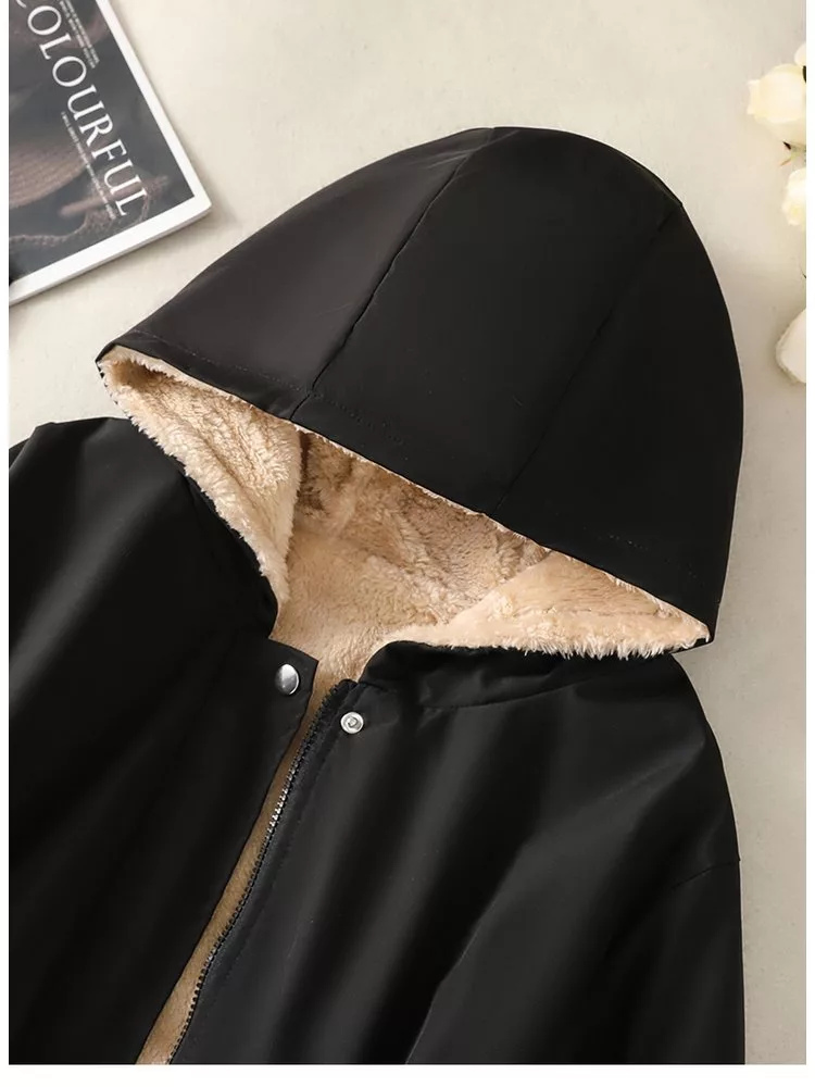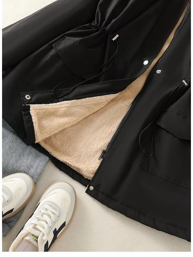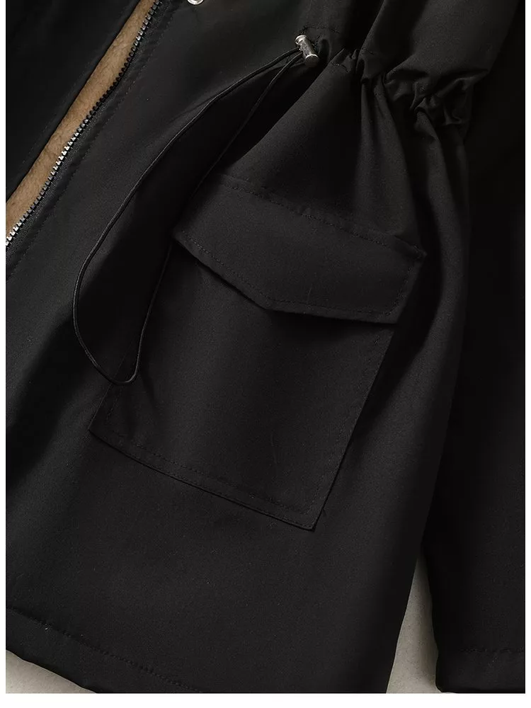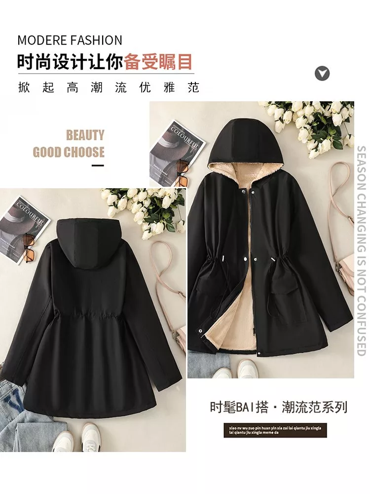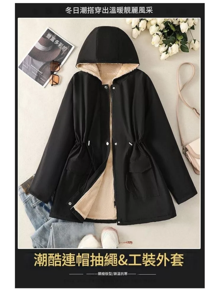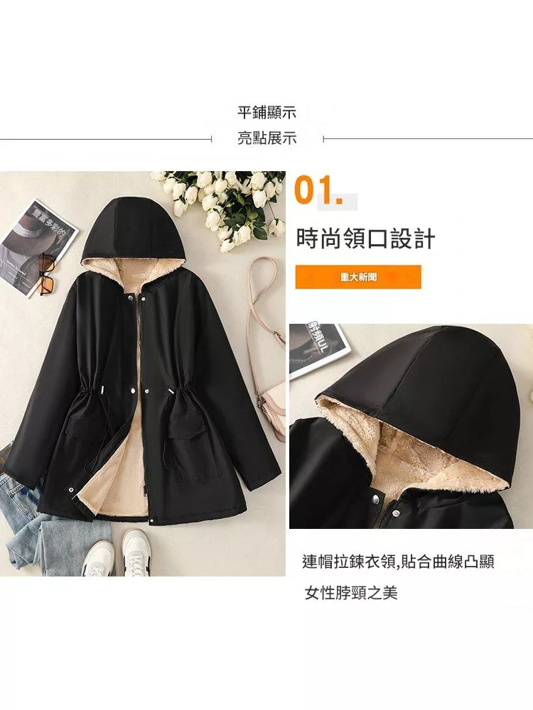 連帽派克服寬鬆加絨加厚收腰中長外套#