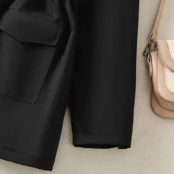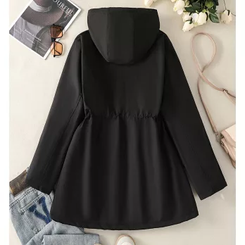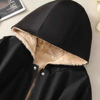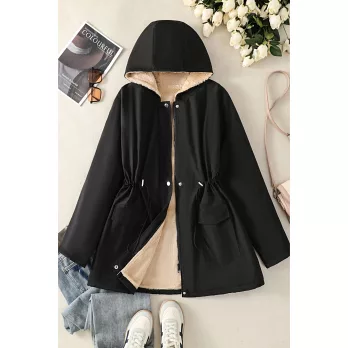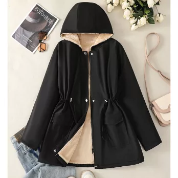 【ACheter】 連帽派克服寬鬆加絨加厚收腰中長外套# 126554 L 黑色