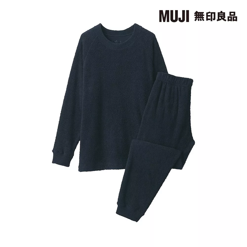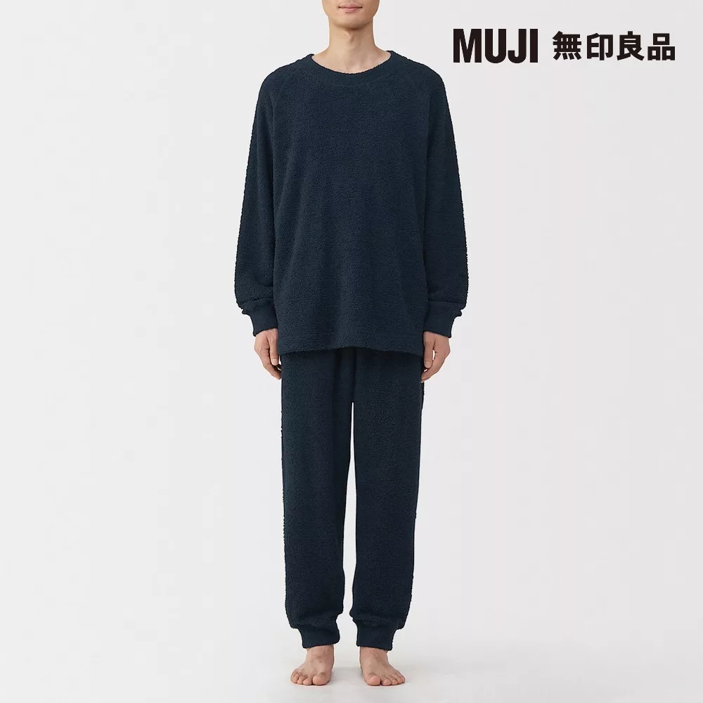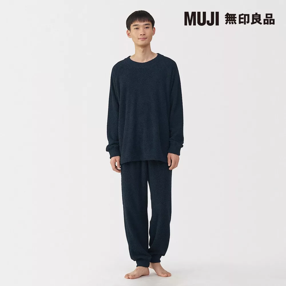 【MUJI 無印良品】男柔滑長袖家居睡衣 M 暗藍