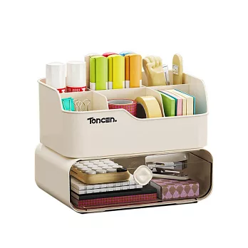 【EZlife】簡約可疊加桌面整理分隔置物(雙層款) 米白