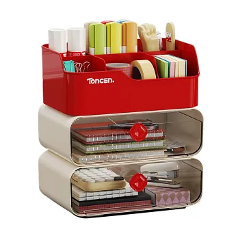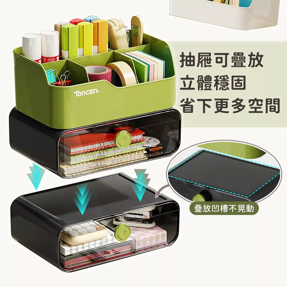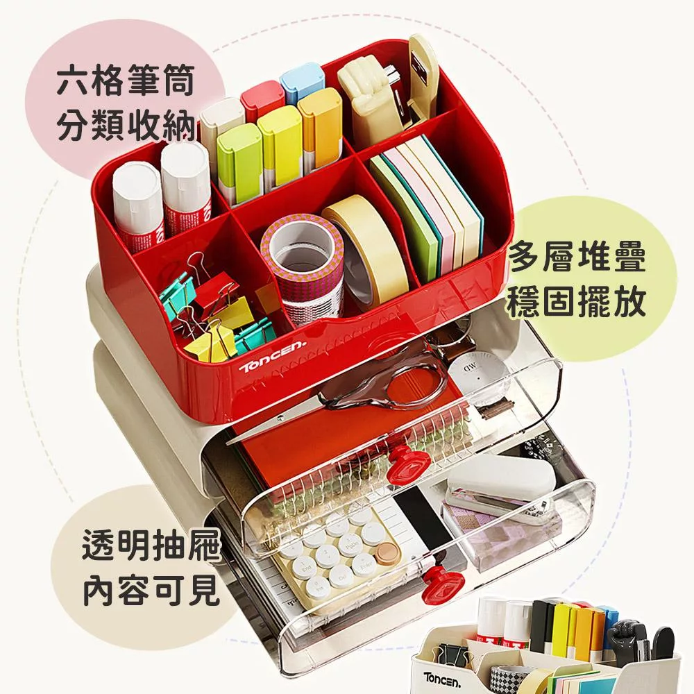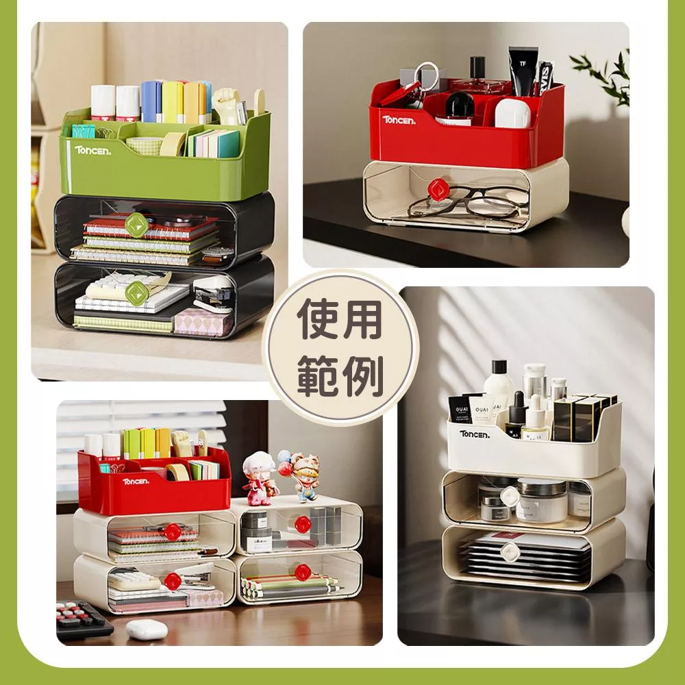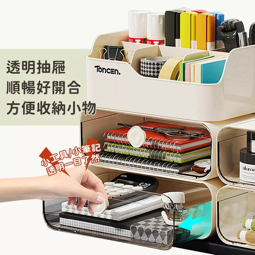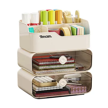 【EZlife】簡約可疊加桌面整理分隔置物(雙層款) 米白