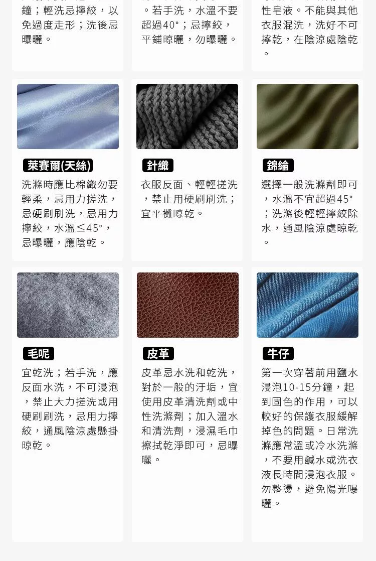 ●衣服勿沾染到彩妝、香水味、煙味及人為因素破壞商品。