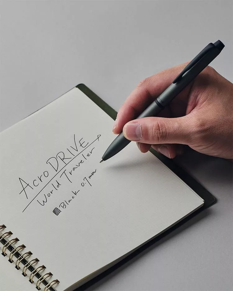 「Acro Drive」是一款搭載低黏度油性墨水「Acro Ink」的油性原子筆,特點是筆跡濃郁清晰、書寫滑順、起筆不卡墨,並具備好握且流線的筆身設計。