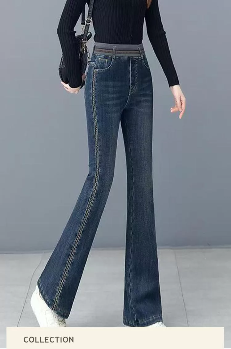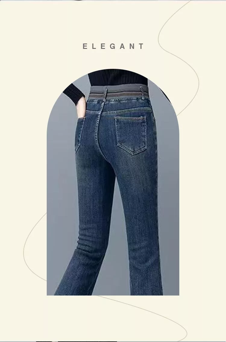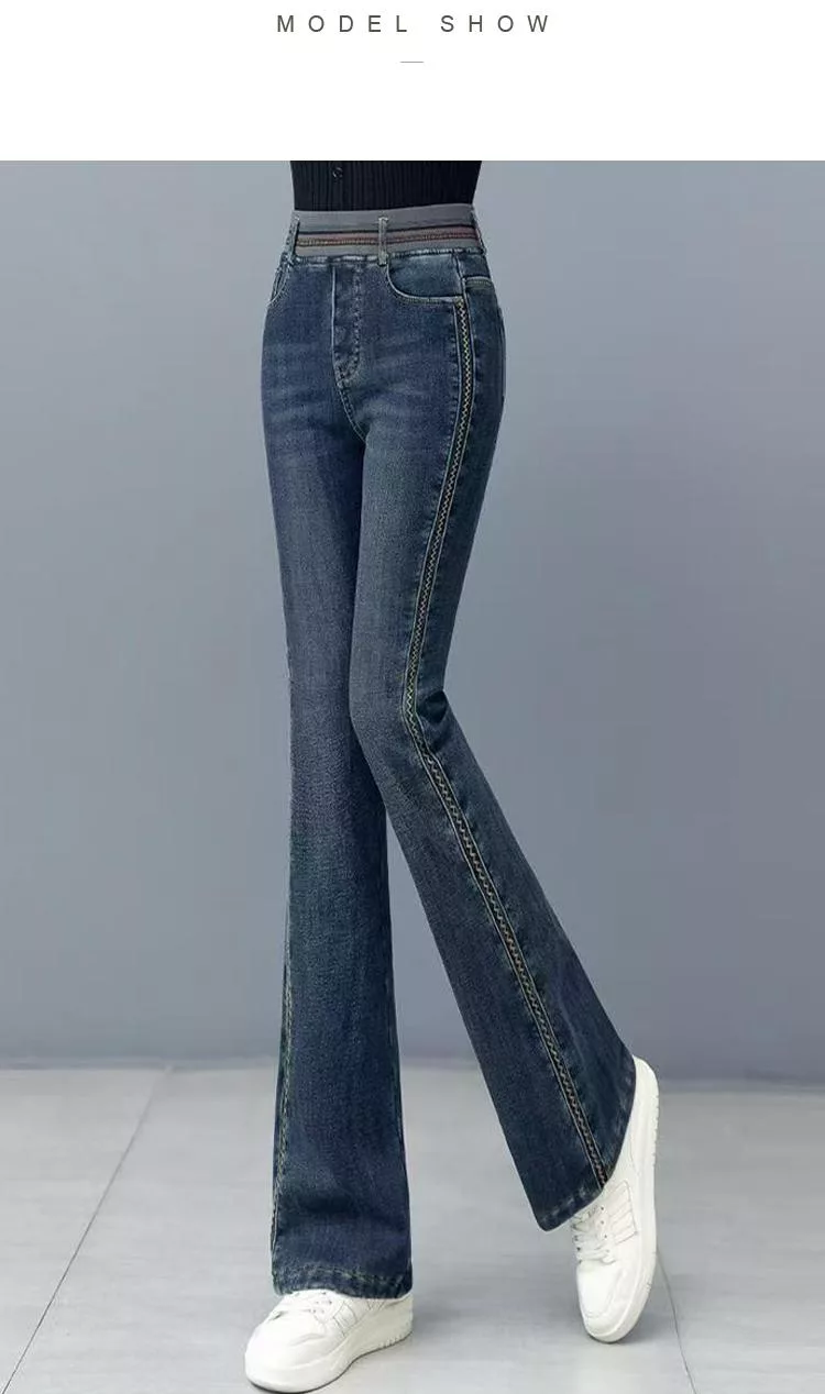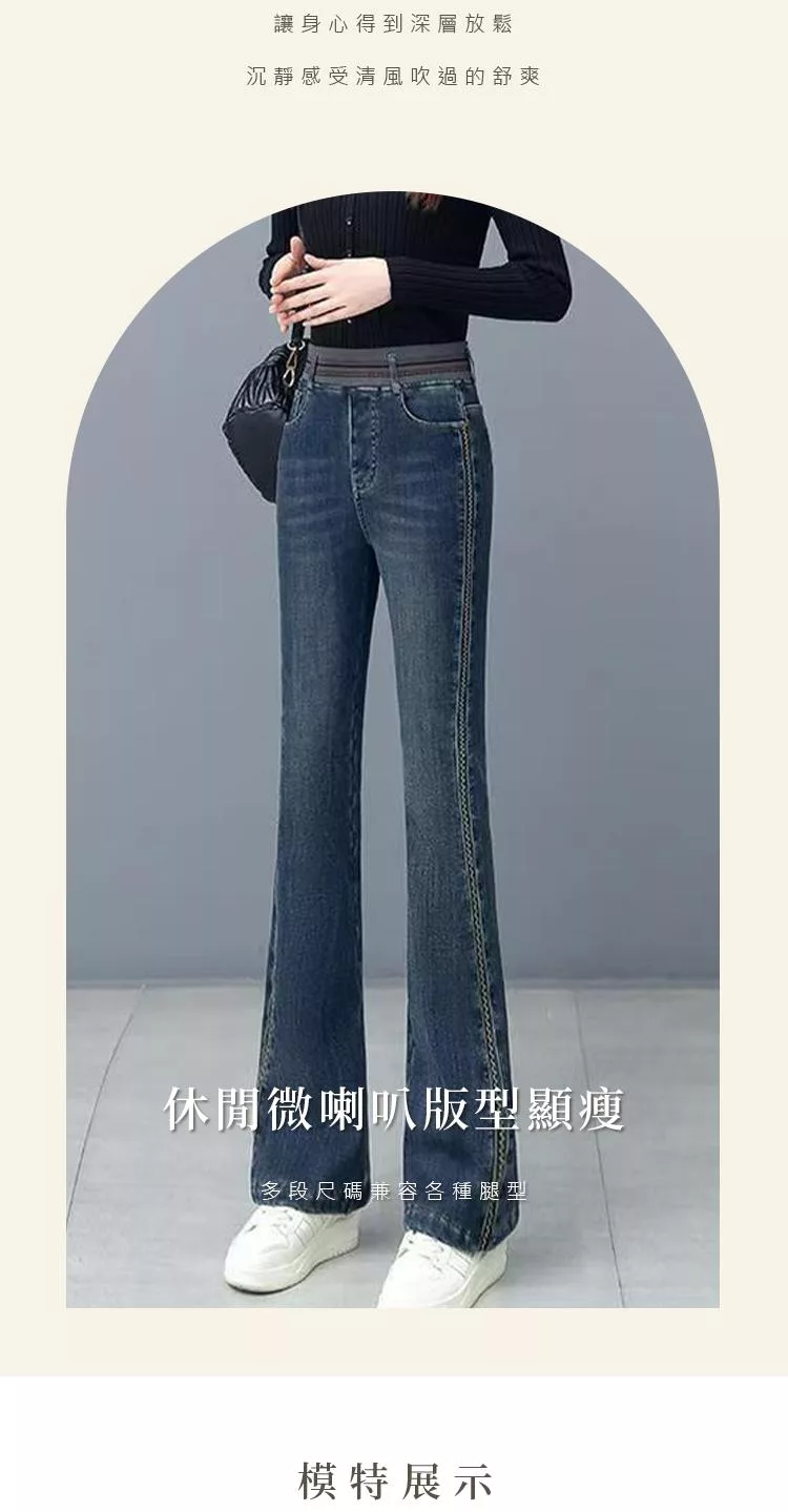 【初色】通勤風提臀顯瘦高腰鬆緊腰牛仔褲直筒喇叭褲休閒褲寬褲長褲-共2款-16038(M-5XL可選) M 深藍色九分褲