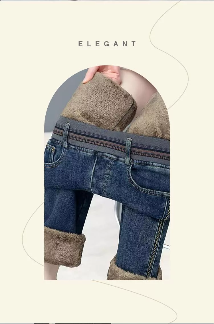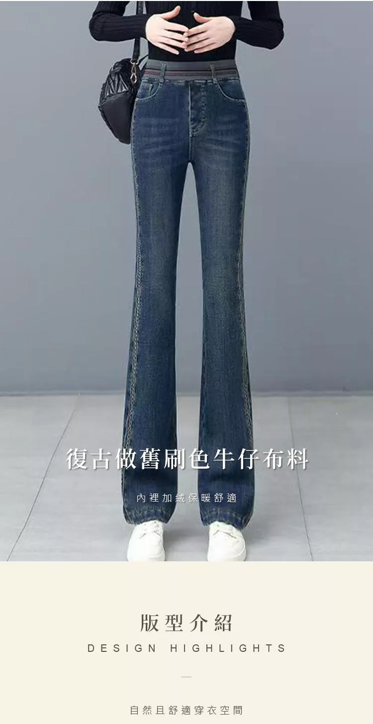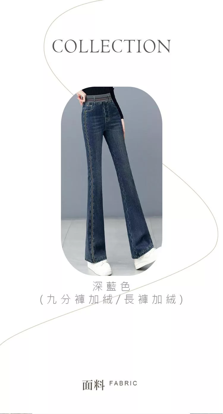【初色】通勤風加絨提臀顯瘦高腰鬆緊腰牛仔褲直筒喇叭褲休閒褲寬褲長褲-共2款-16038(M-5XL可選) M 深藍色九分加絨款