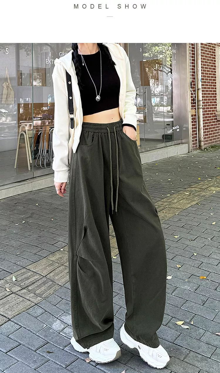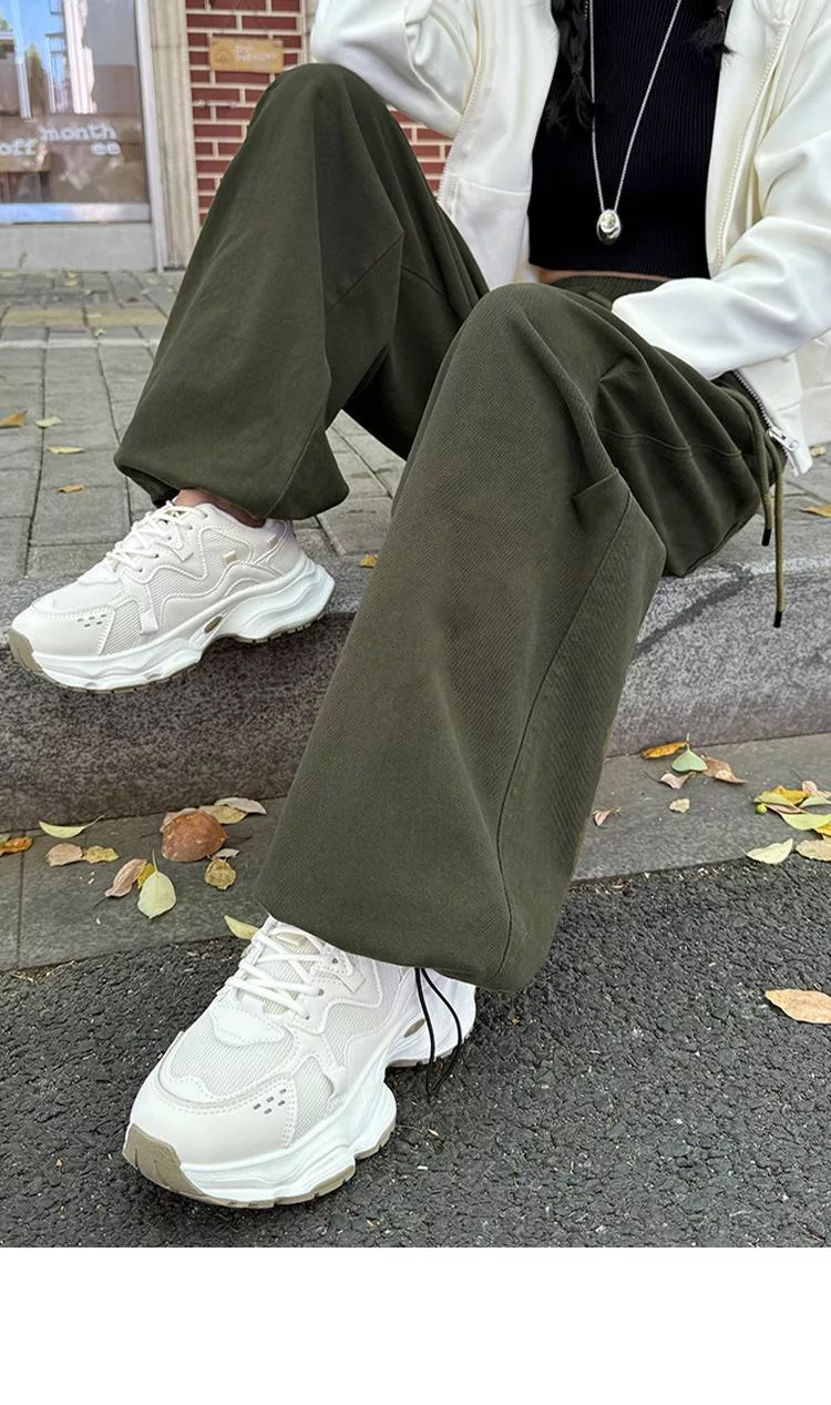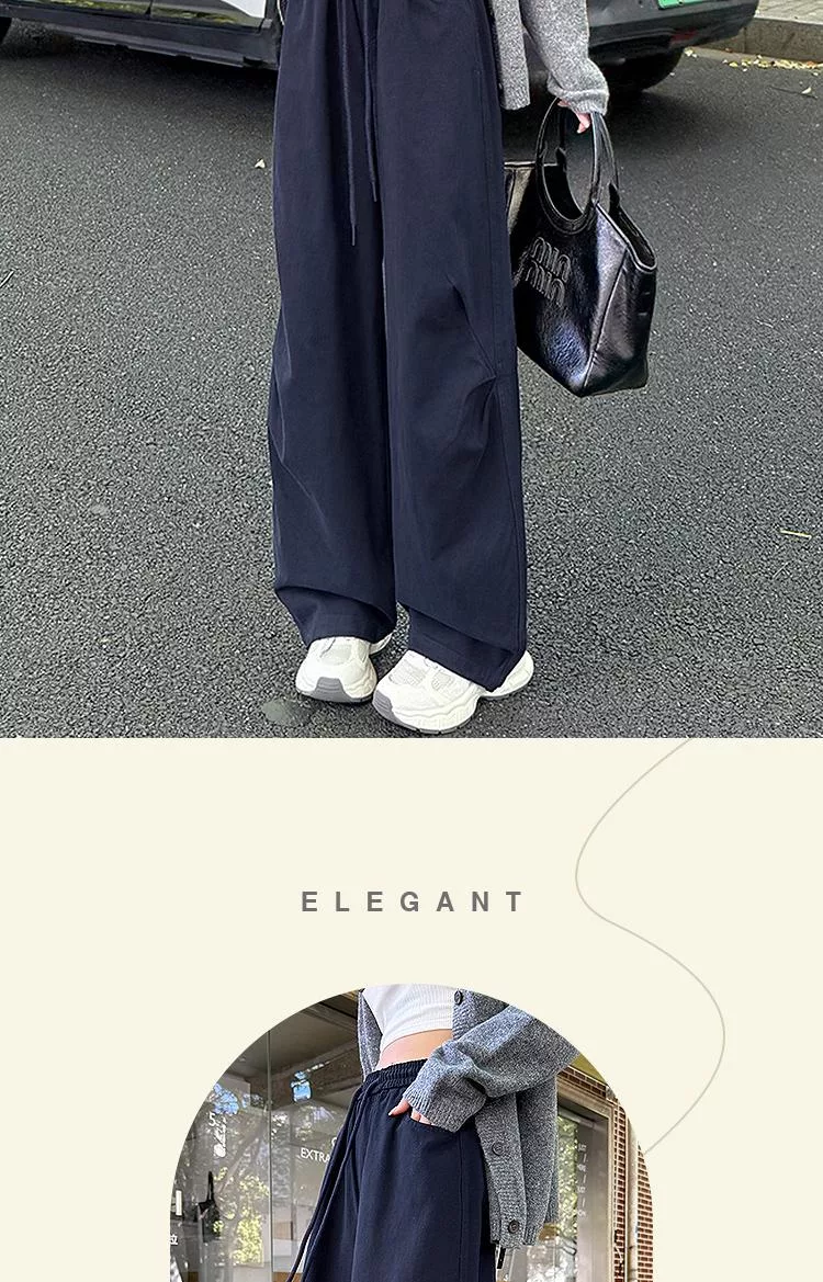 【Jilli~ko】日系糯米褲女垂墜休閒百搭直筒闊腿運動褲 J11170 FREE 黑色