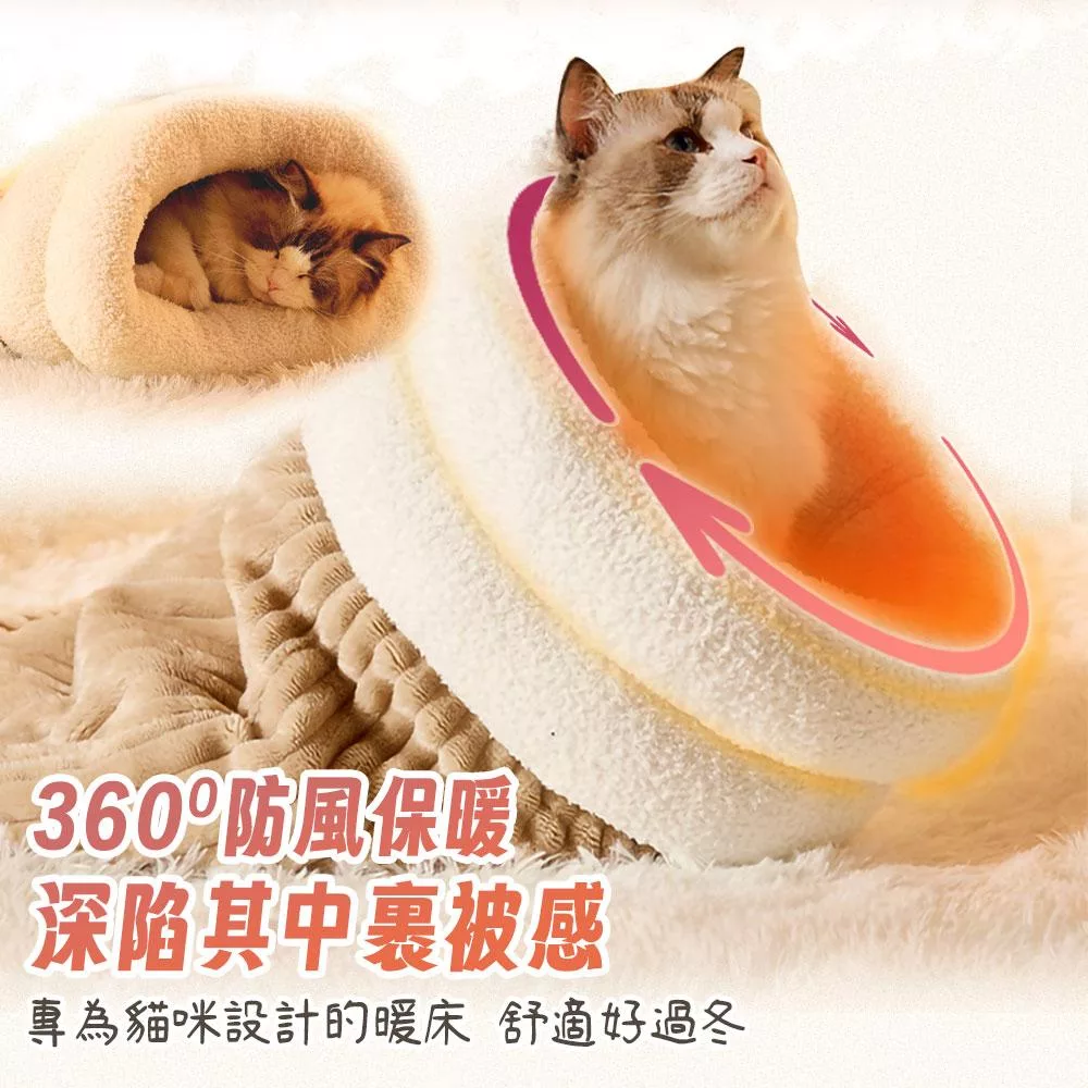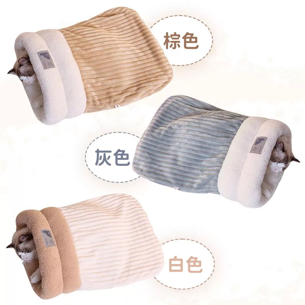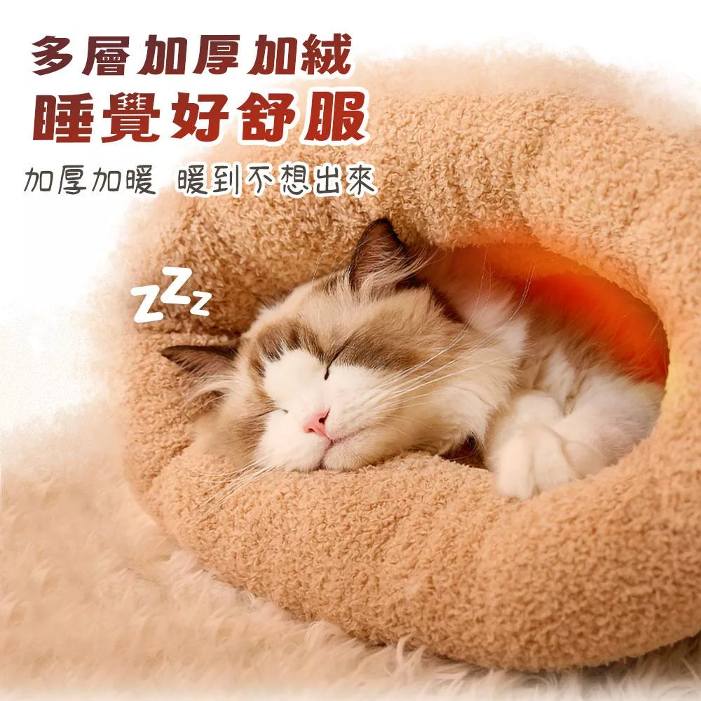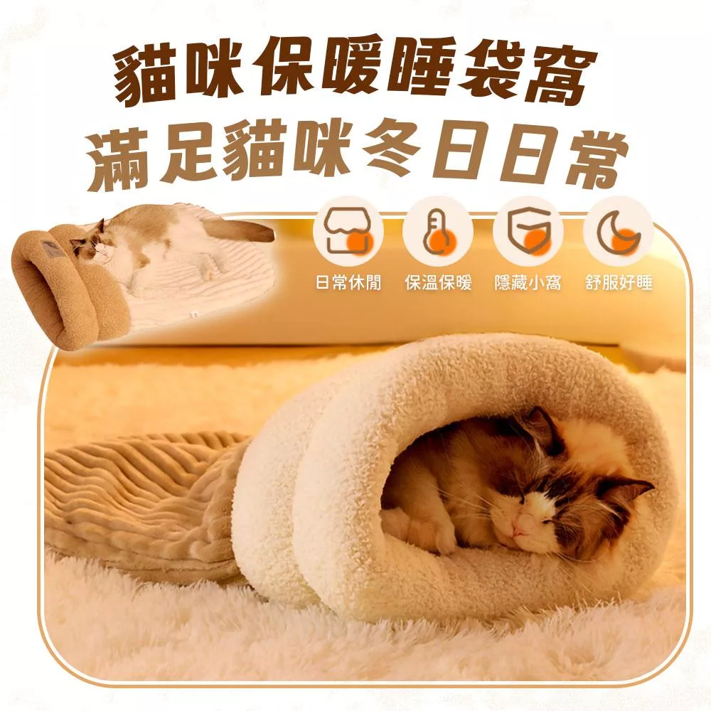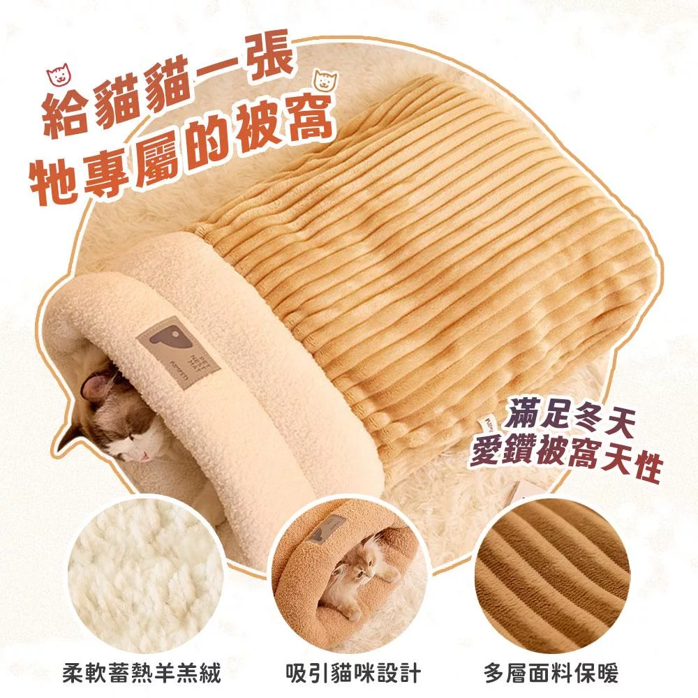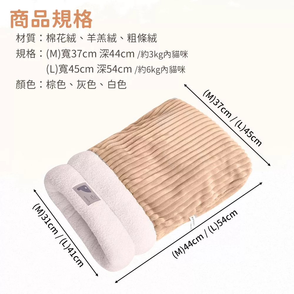 【EZlife】秋冬保暖羊羔絨寵物睡袋窩(M/寬37x深44cm) 棕色