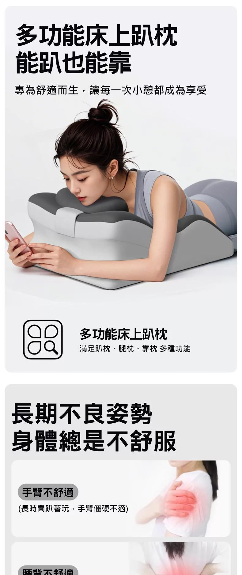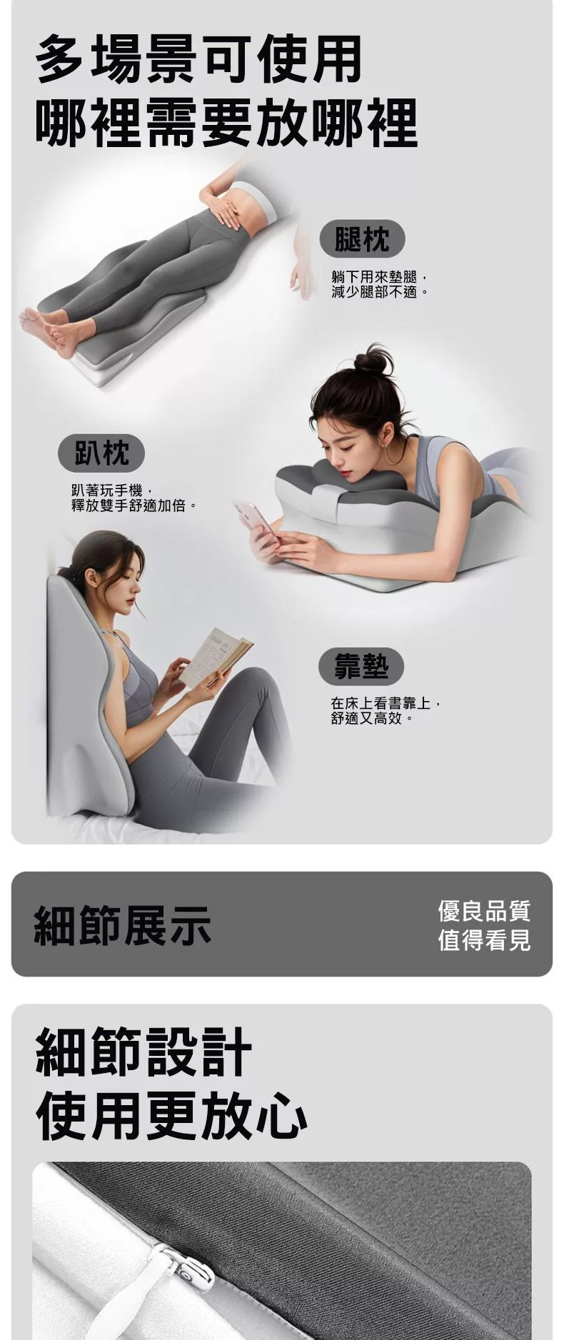 多功能靠墊/趴枕/腿枕+回彈記憶棉