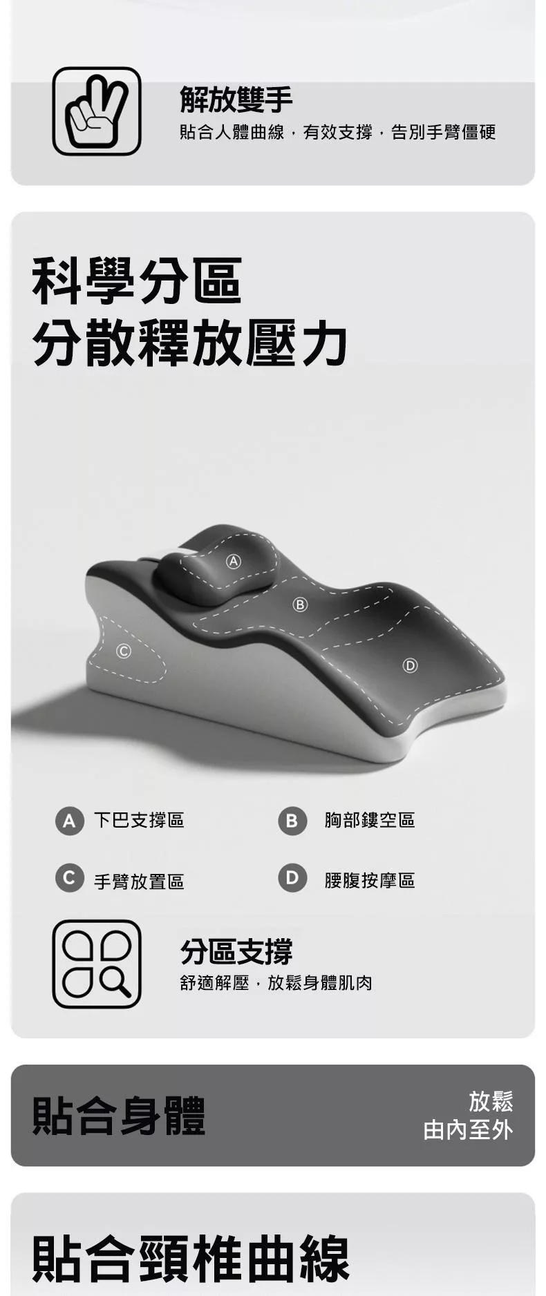 ◆貼合頸部曲度,呵護脖頸支撐身體