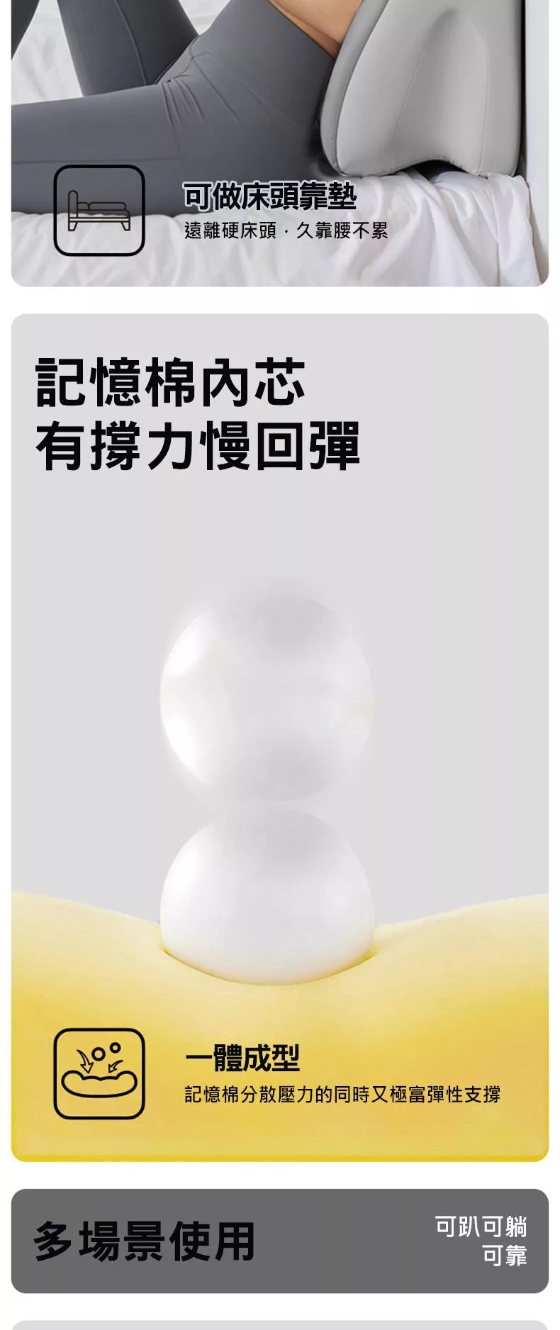 ◆多功能靠墊/趴枕/腿枕+回彈記憶棉