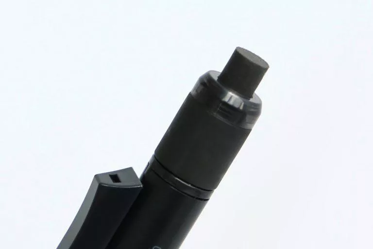 只需上下甩動筆身即可出芯,手握著筆便能操作。若要停止甩動出芯,只需將筆夾向橡皮擦方向滑動即可關閉。