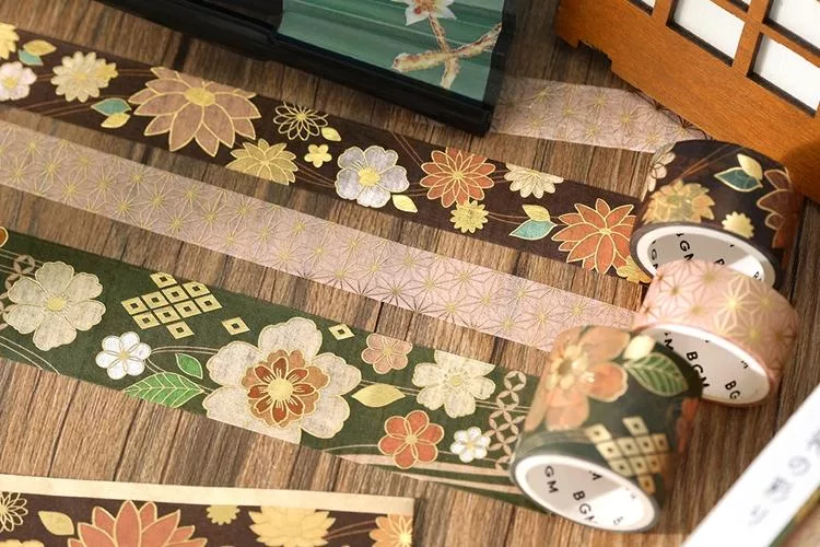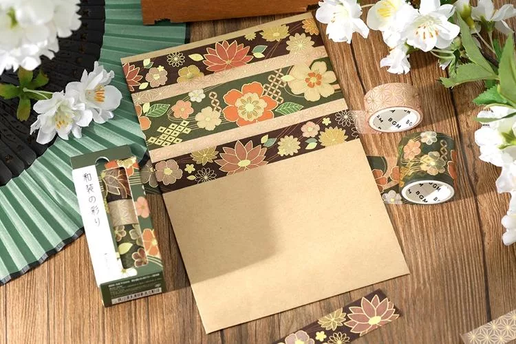 ▼【日本BGM】和紙膠帶 和風圖案三捲入組合II ‧ 深綠
